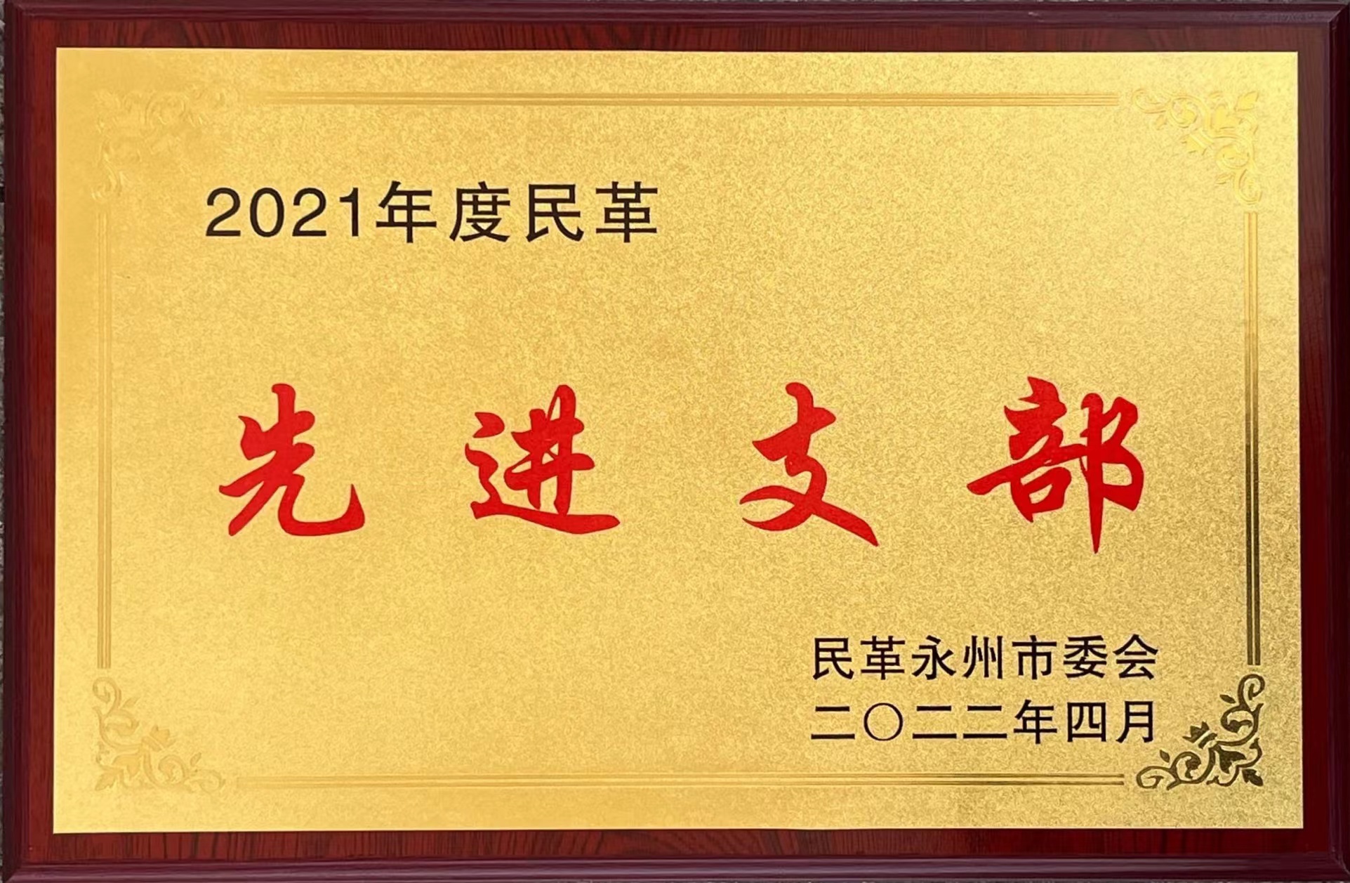 据悉,2015年至2017年支部连续3年以年终考核总分第一的成绩被民革永州市委评为 “优秀支部”和“先进支部”;2020年、2021年又连续荣获民革永州市“先进支部”称号。