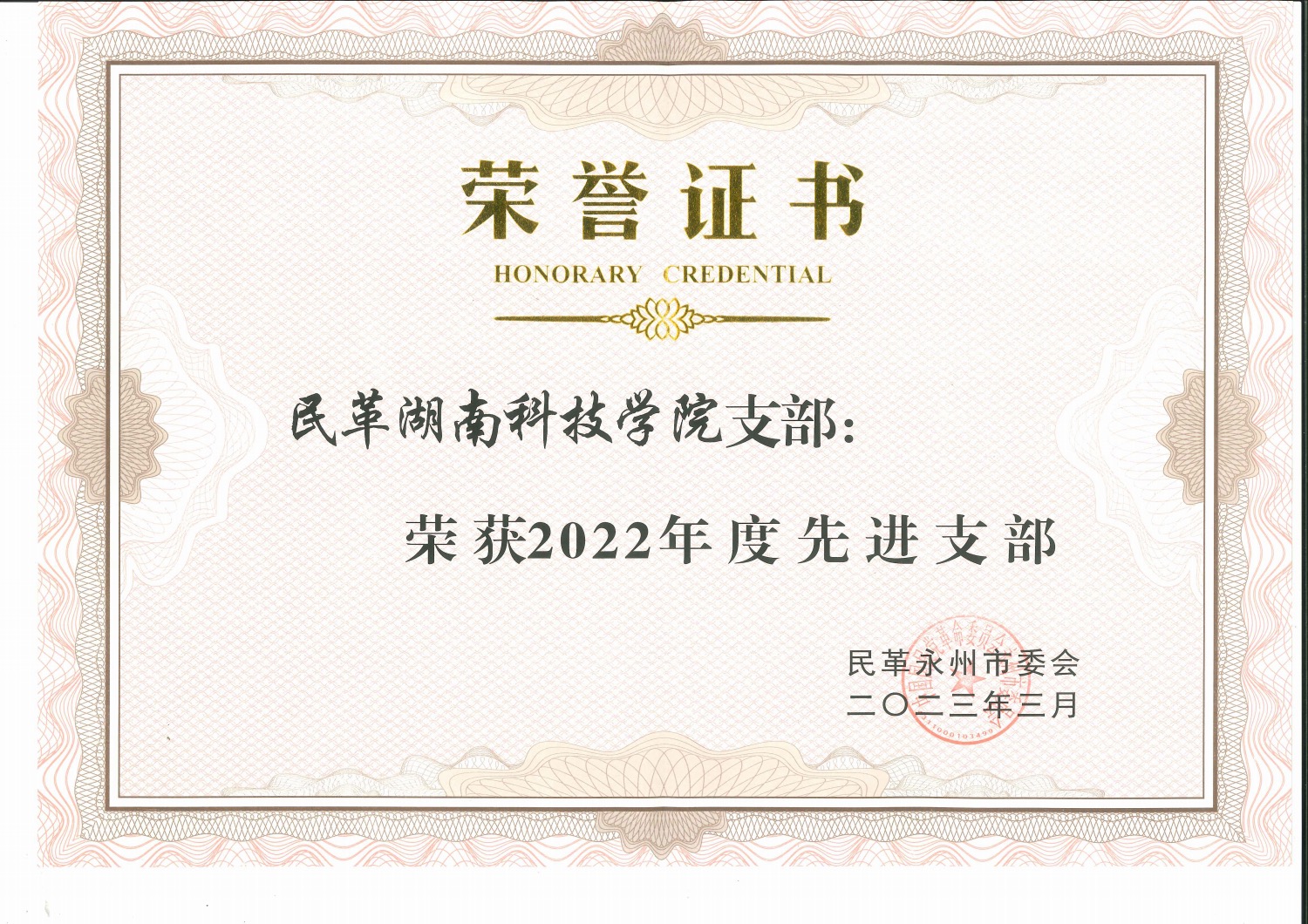 据悉,2015年至今,民革bat365中文官方网站支部7次被民革永州市委评为 “优秀支部”或“先进支部”,2022年被民革湖南省委会评为省级“先进基层组织”,方芳个人获评省级“优秀党员”。