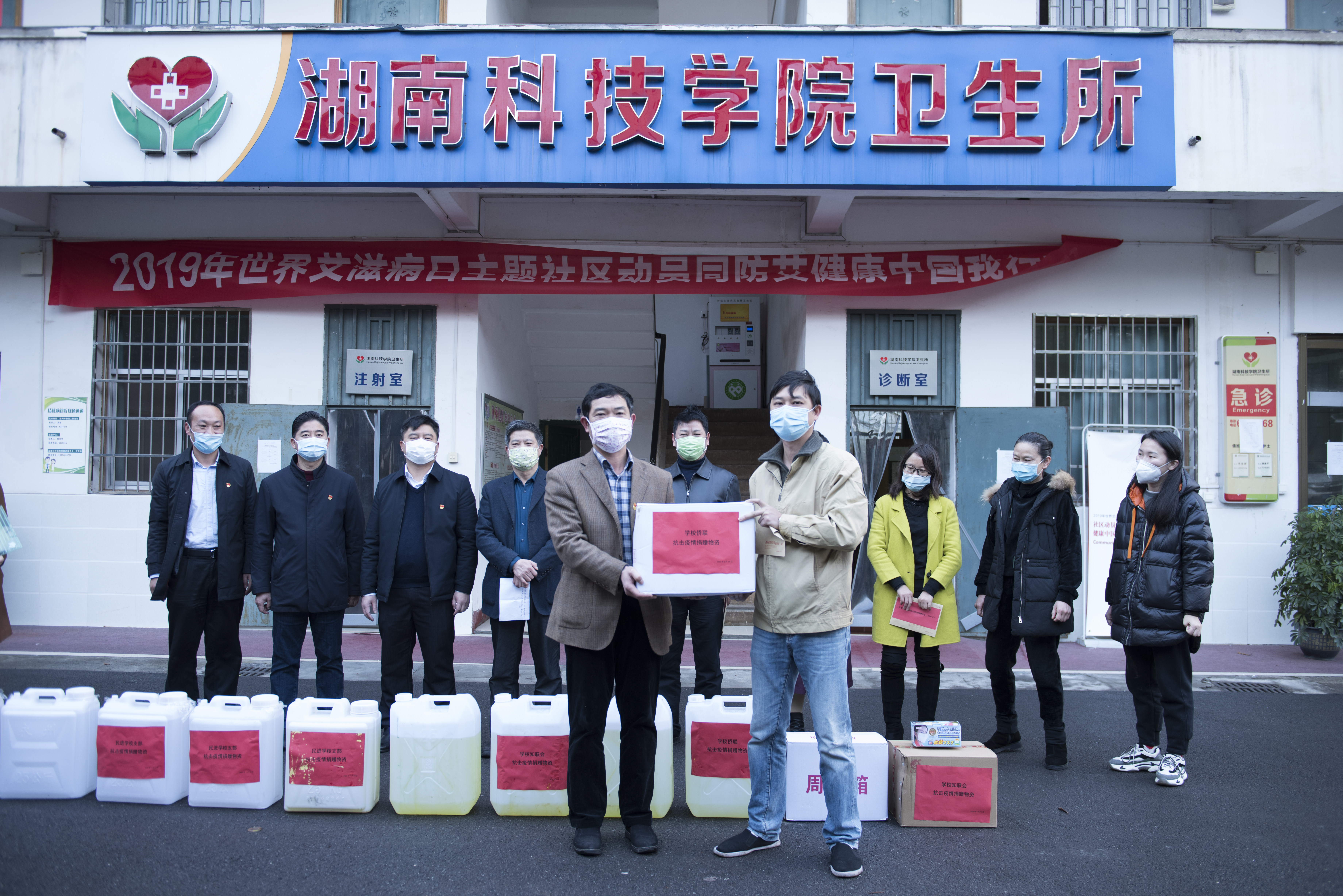 本次捐赠共有医用酒精425斤、84消毒液160斤、口罩50个以及4500元现金。彭立威和吴小林代表学校分别接受了捐赠的现金和物资。