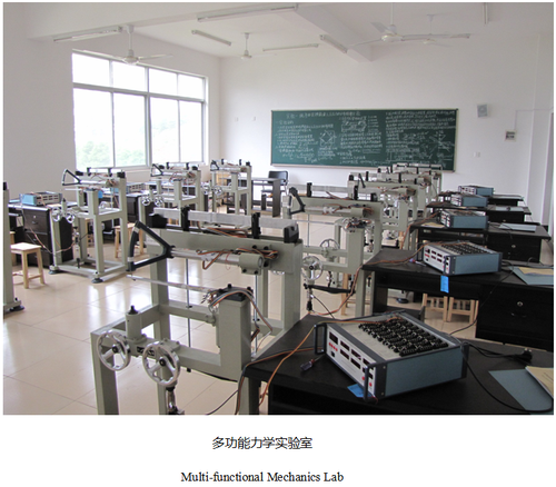 该室于2008年获得“中央与地方共建高校特色优势学科实验室”项目专项资金资助建立,实验室面积70㎡,资产达11.4万元,主要仪器设备为10套XL3418C型材料力学多功能组合实验台。该室目前承担了材料力学、工程力学、理论力学、弹性力学等课程的实验教学任务。主要实验项目:纯弯曲梁的正应力实验;薄壁圆筒在弯扭组合变形下主应力测定;材料弹性模量E、泊松比µ 的测定;偏心拉伸实验;压杆稳定实验;电阻应变片灵敏系数标定。
