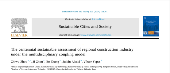 近日,国际性学术期刊《Sustainable Cities and Society》(中科院TOPQ1区、JCRQ1、IF=11.7)在线发表了我院周志武博士应用多学科耦合模型研究中国建筑业百年(2000~2100年)可持续发展数据,文章标题为“The centennial sustainable assessment of regional construction industry under the multidisciplinary coupling model”。周志武博士为第一作者和通讯作者。