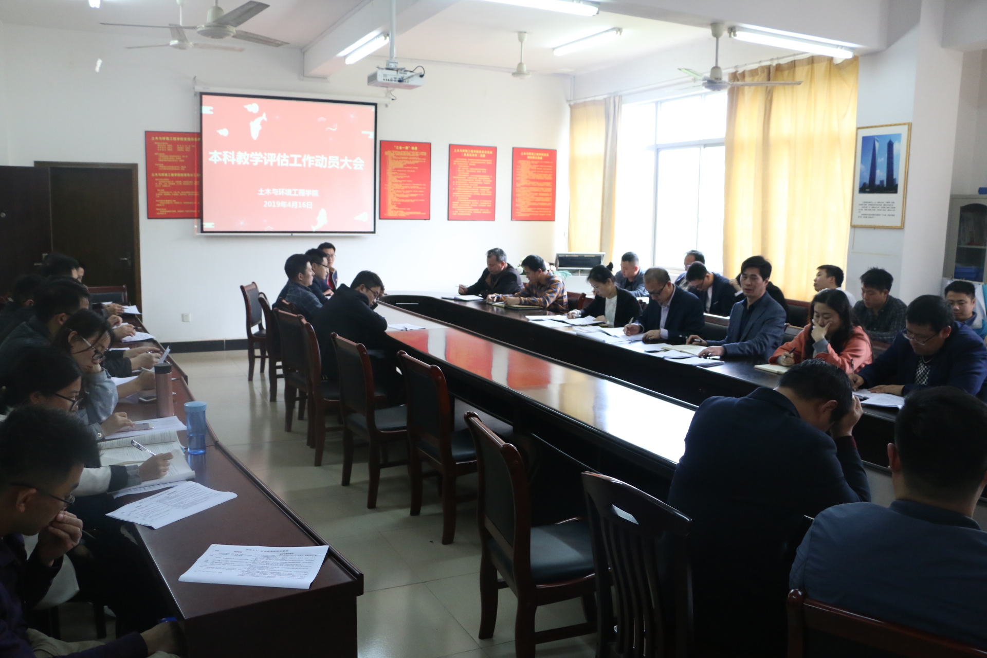 本网讯 4月16日下午,土木与环境工程学院在逸夫楼213召开本科教学工作审核评估动员大会,全院教职员工参加。会议由学院党总支书记张俭民主持。