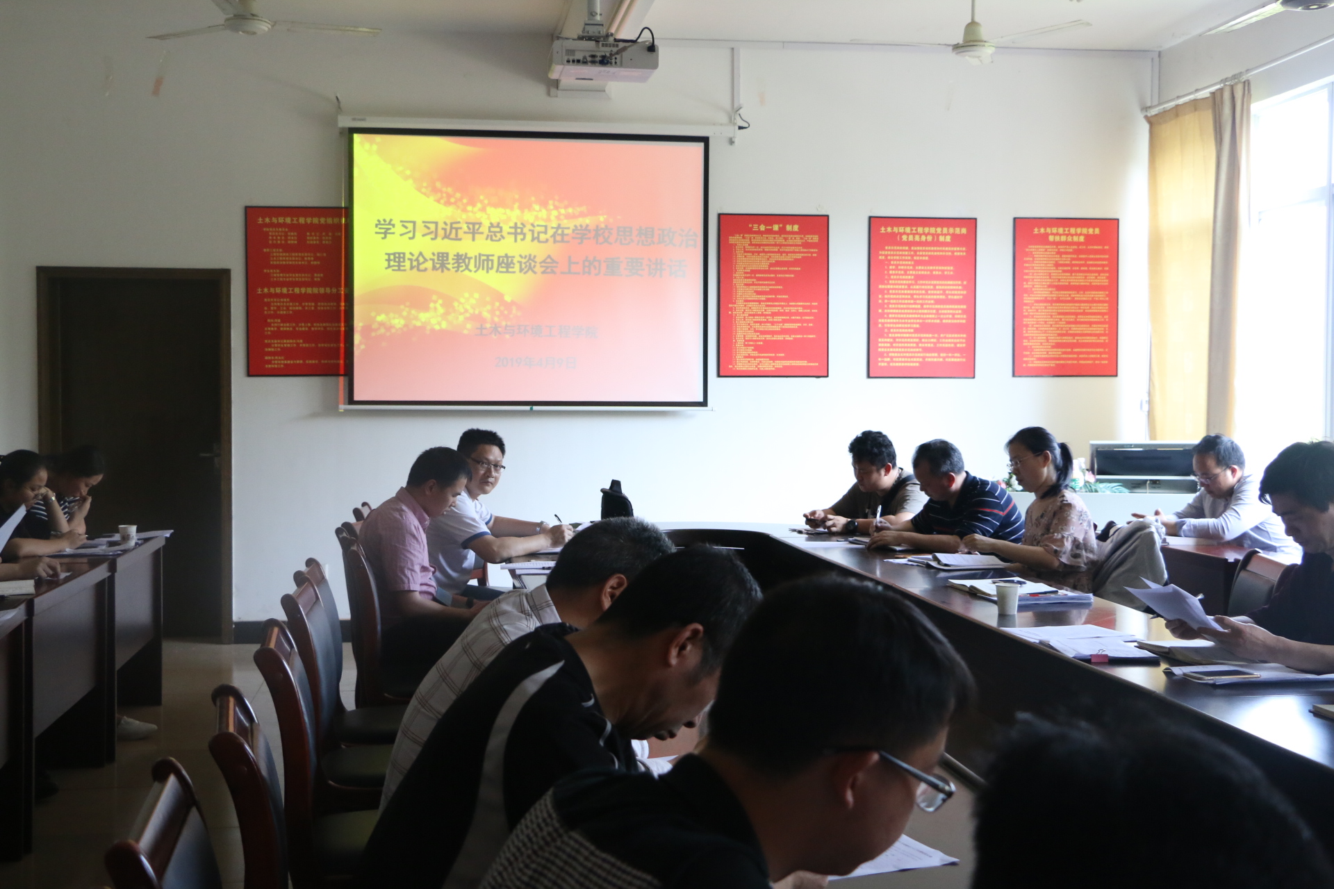 本网讯 4月9日下午,土木与环境工程学院组织全院教职工在逸夫楼213会议室举行学习习近平总书记在学校思想政治理论课教师座谈会上重要讲话精神专题学习会。学院党总支书记张俭民主持学习会。