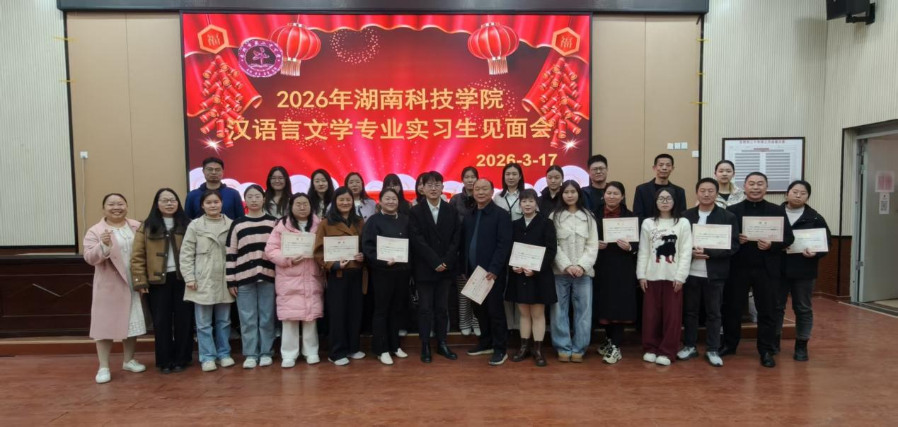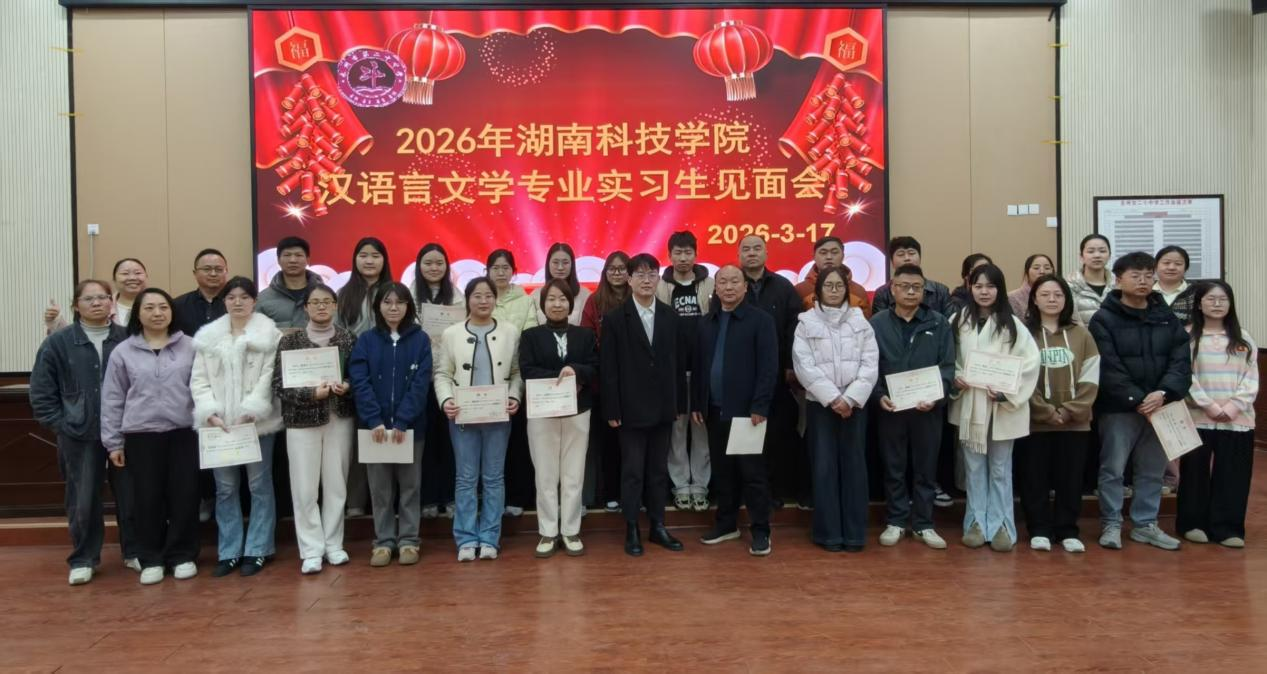 阳春三月,万象更新。为进一步深化校地合作,扎实推进教育实习工作,2026年3月17日上午,bat365中文官方网站汉语言文学专业实习生见面会在永州市第二十中学创新楼会议室隆重举行。本次会议由蒋婷老师主持,永州市第二十中学匡前书记、邓敏娟副校长、邓国毅主任及全体语文老师与湖南科技学院带队指导老师高志鹏及全体实习生齐聚一堂。