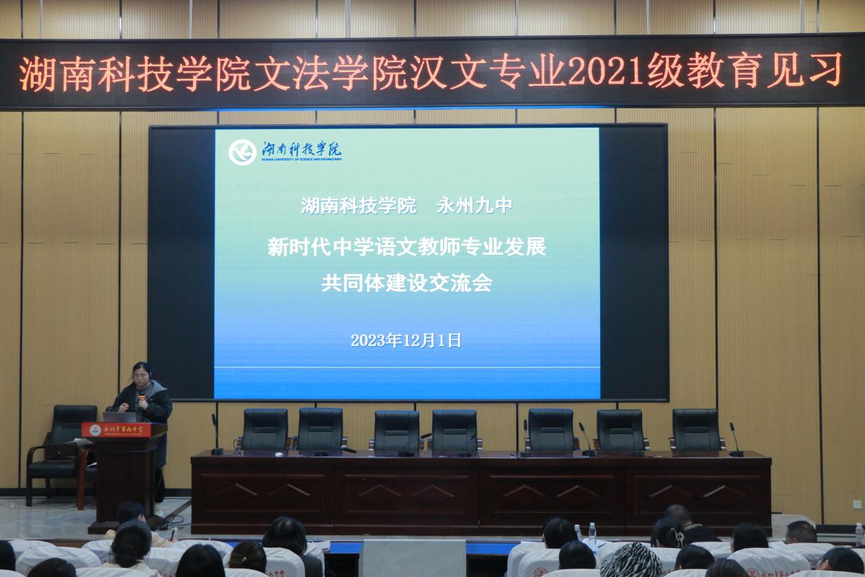 本网讯(通讯员:李惊宇 梁怡)为增强汉语言文学专业学生对专业技能的掌握,深化专业理论知识的理解,实现知识向实践的转化,提升教育教学能力,12月1日,在学院实习研究队宋艳旭老师和各班领队老师及辅导员龙慧老师的带领下,2021级汉语言文学专业学生前往永州市第九中学开展教育见习活动。出席本次会议的有文法学院院长谷显明教授,副院长肖智成博士,bat365中文官方网站语文教育研究中心主任刘忠华老师,中文系副主任尹华君老师以及永州市九中教师团队和21级全体汉文专业学生。