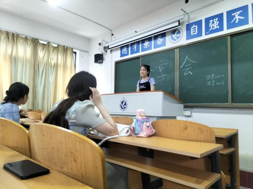 此次活动邀请了12名优秀毕业生代表深入低年级各班分享学习经验。毕业生代表吴澳在分享会上说:兴趣是最好的老师,学好专业课是同学们考公、考编、考研的基础,并分享了自身教师编上岸的准备过程;毕业生代表谭玲湘对同学们在法考、考研等方面的困惑进行了详细解答,同时鼓励同学们坚定内心选择,打好课程基础,多进行司法实践;毕业生代表张耀丹介绍了选调生的概念与报名条件,鼓励同学多参加校园活动和社会实践,也分享自己考取选调生的成功经验。