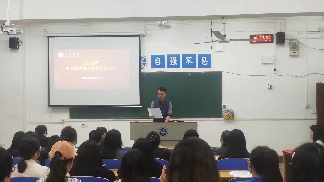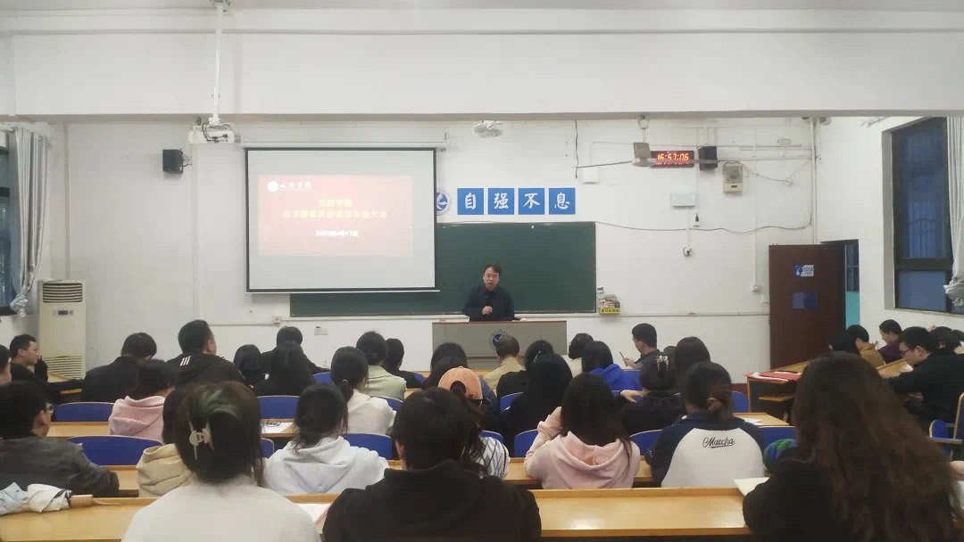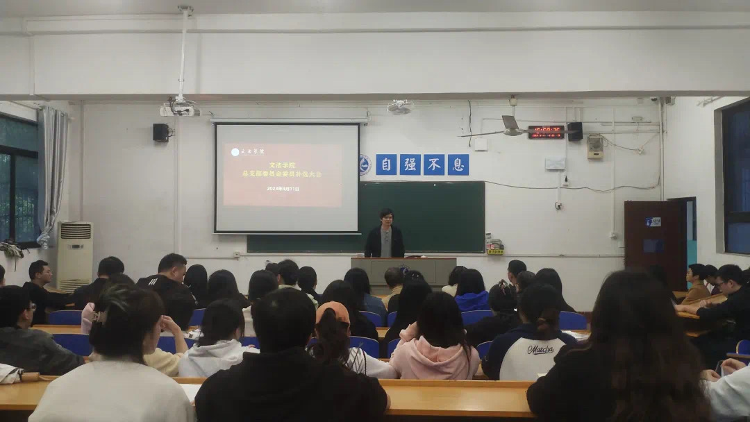 本网讯 为进一步加强文法学院党组织建设,全面推动党建工作顺利开展,4月11日,文法学院党总支于明德楼209召开党员大会,会议由党总支书记张能泉主持。