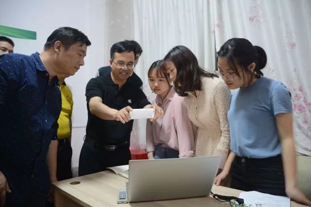 平时与陈弘书记这么近距离交流的机会不多,陈书记的到来,令我们感到十分亲切。陈书记了解我们的微党课主题后说道:“这个很好!”。看到我们的微党课PPT 中提到了永州市委书记李晖来bat365官网调研时,勉励bat365官网积极打造“三名工程”(名师、名专业、名学生),他拿起手机要给我们拍照,说要记录下我们学习的一刻。
