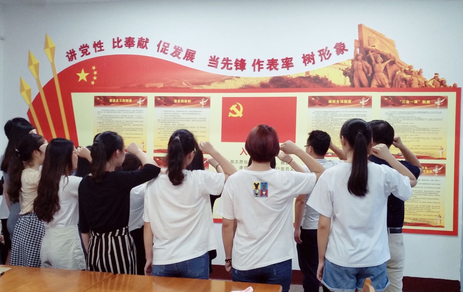 活动在响亮的宣誓声中拉开帷幕。英语日语专业学生联合党支部书记杜俊杰带领2018年上期发展的14名预备党员面向鲜红的党旗庄严宣誓。随后,唐朝继教授以“不忘党的初心,牢记党的使命”为主题为在场的同志们讲了一堂生动又深刻的党课。他重点阐述了党的初心和使命“是什么”、“为什么”、“怎样践行”等理论实质。他指出,新时代的青年学子应该自觉地以习近平新时代中国特色社会主义思想武装头脑,应有“舍我其谁”的勇气和“非我莫谁”的能力,这样的“勇气”和“能力”是“不忘初心、牢记使命”的判断标准。