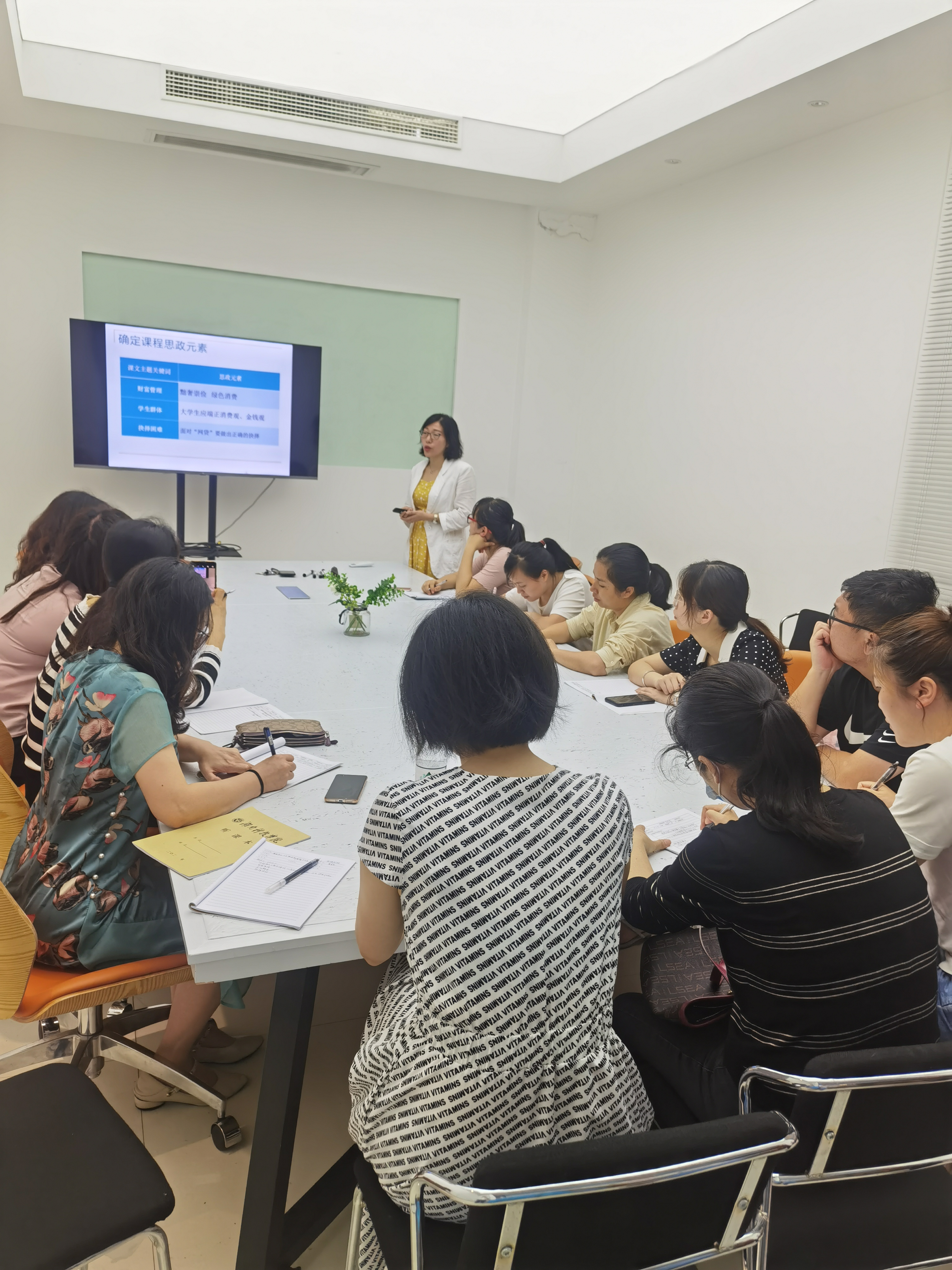 6月1日下午,外国语学院公共教学部肖芳英老师在创客工场主持了“课程思政在《新视野大学英语读写教程》与《新视野大学英语视听说教程》中的设计”的教学研讨活动,公共英语教学部20余名教师参加了本次研讨会。