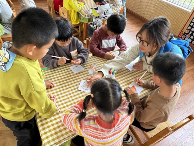 此外,志愿者们引导小朋友们将感情融于墨中,将祝福融入画里。在志愿者的帮助下,小朋友们用心制作卡片,以此来向感激之人表达感恩之情。