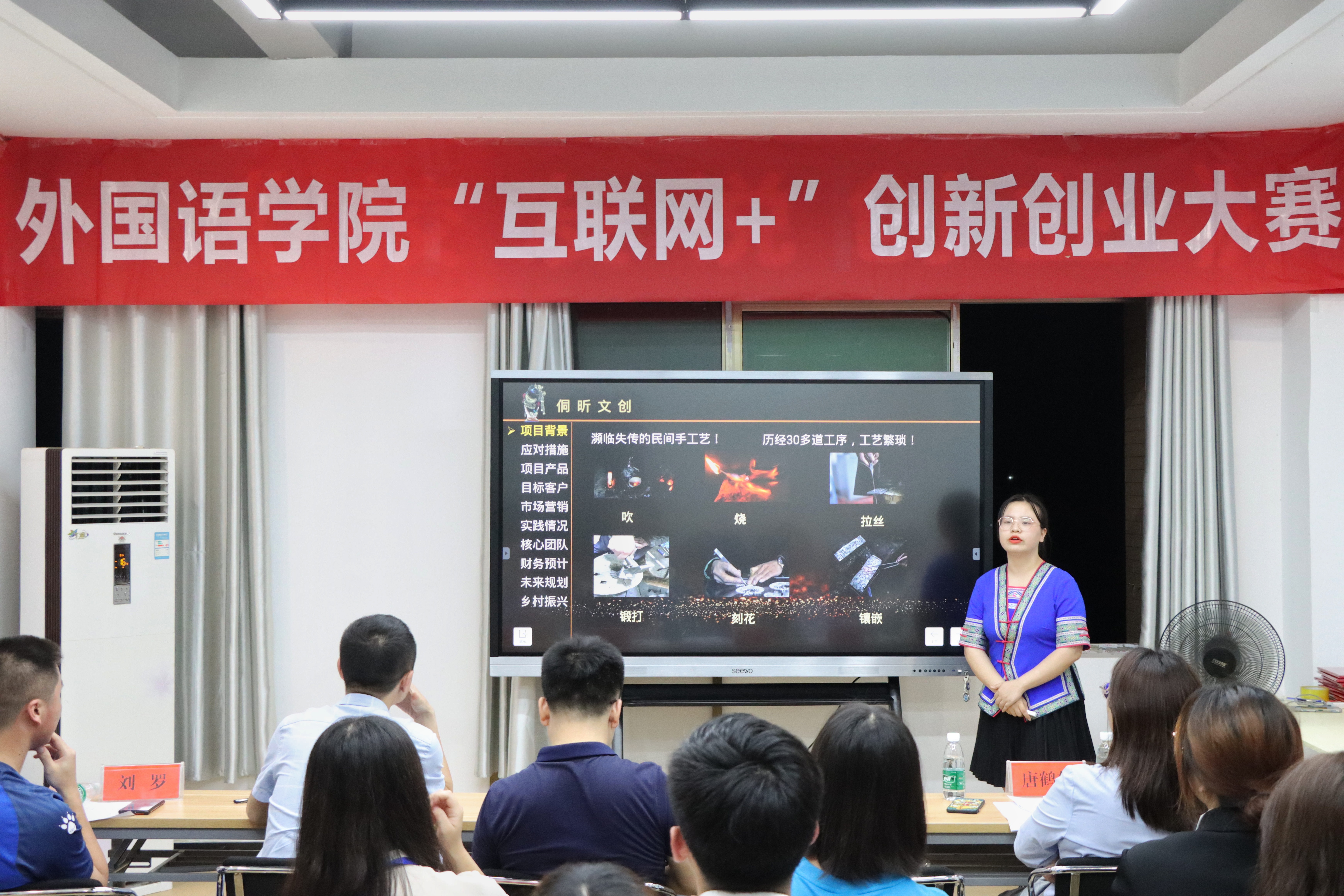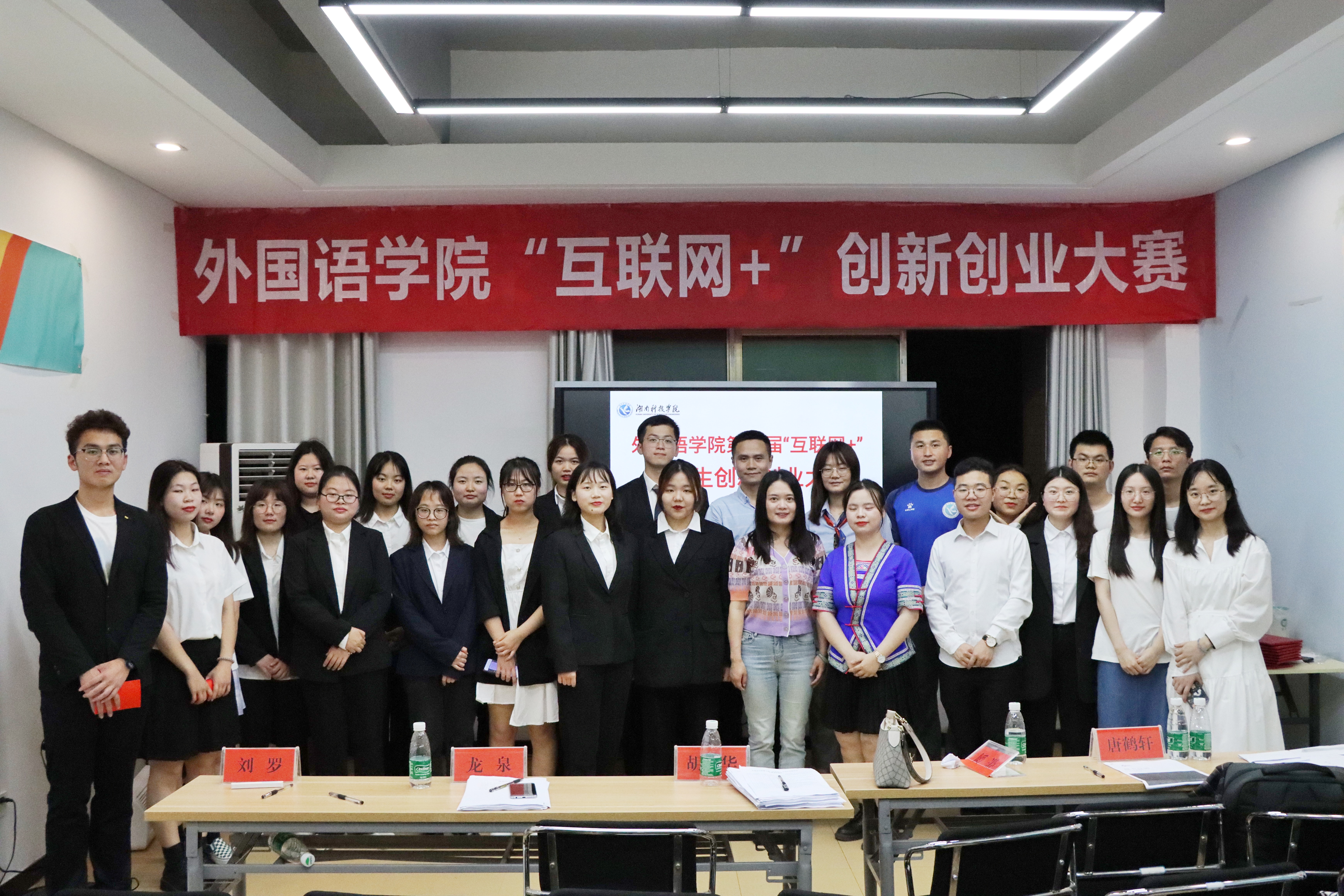 本网讯(通讯员 文慧聪)为进一步推动我院创新创业工作,激发大学生创新创业热情,培养创新创业型人才,6月2日晚7:30,外国语学院在创新创业大楼聚师堂校企合作工作室317室成功举办了 “互联网+”创新创业选拔赛。外国语学院党总书记张剑,学工办副主任刘罗、唐鹤轩;学校招生就业处处长、创新创业学院院长胡清华以及创新创业指导办主任龙泉莅临本次比赛并担任评委。