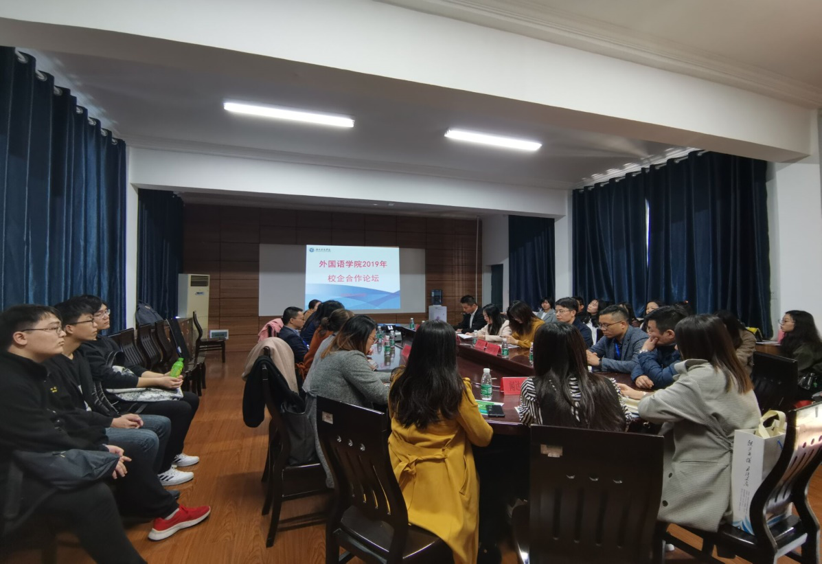 本网讯(通讯员 陈丽菲)为推动我院实施实践创新教育,更好的服务学生的求职创业工作,促进产、教、研相融合。bat365中文官方网站外国语学院于11月23日下午1:00在博雅楼202会议室召开了外国语学院2019年校企合作论坛。