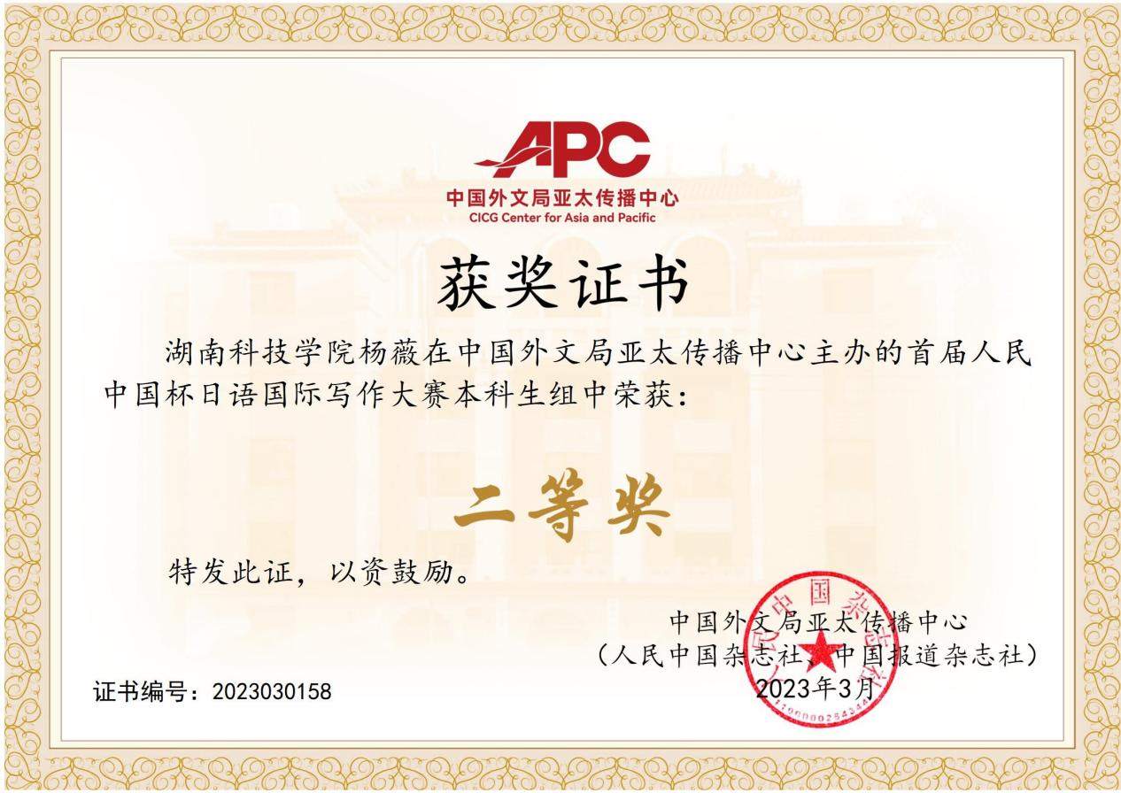 我院学子在首届人民中国杯日语国际写作大赛取得佳绩