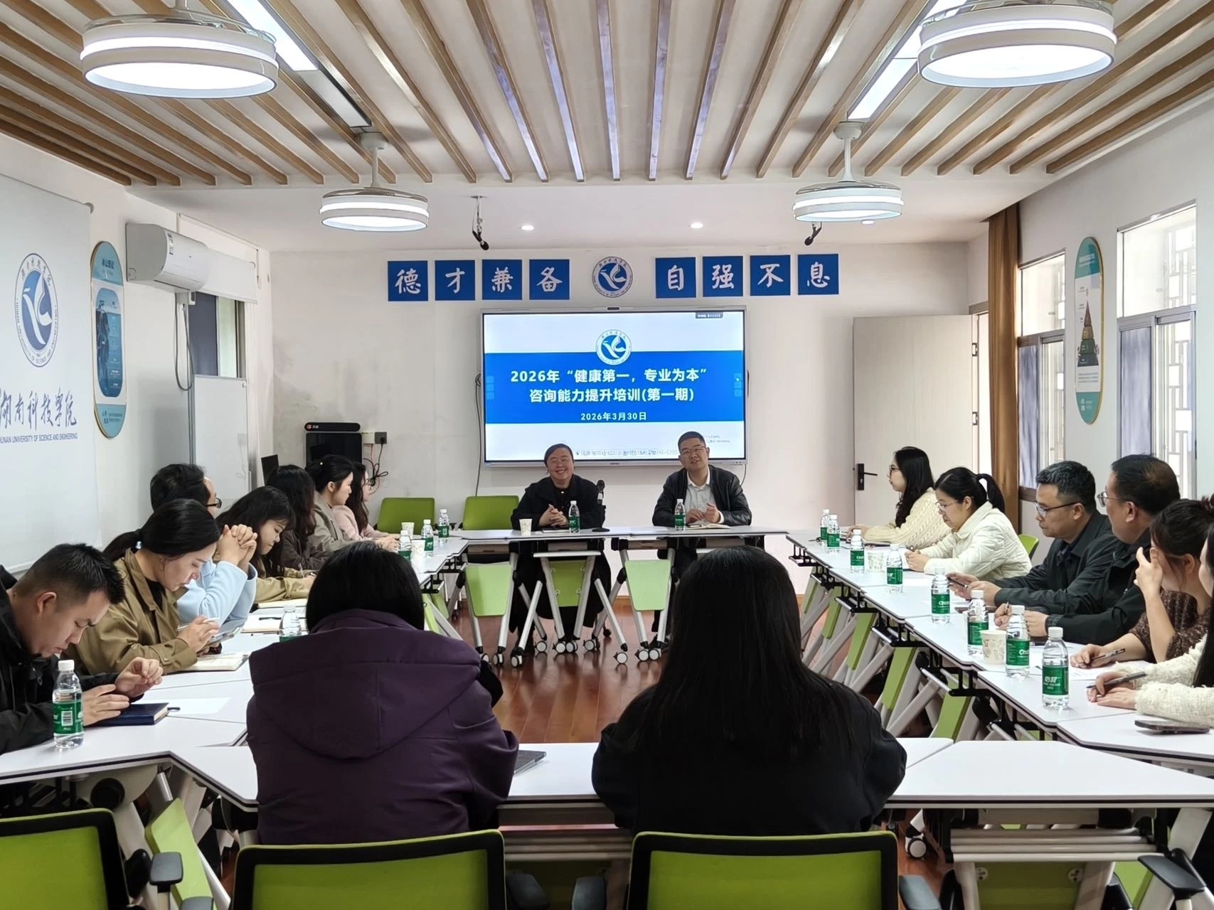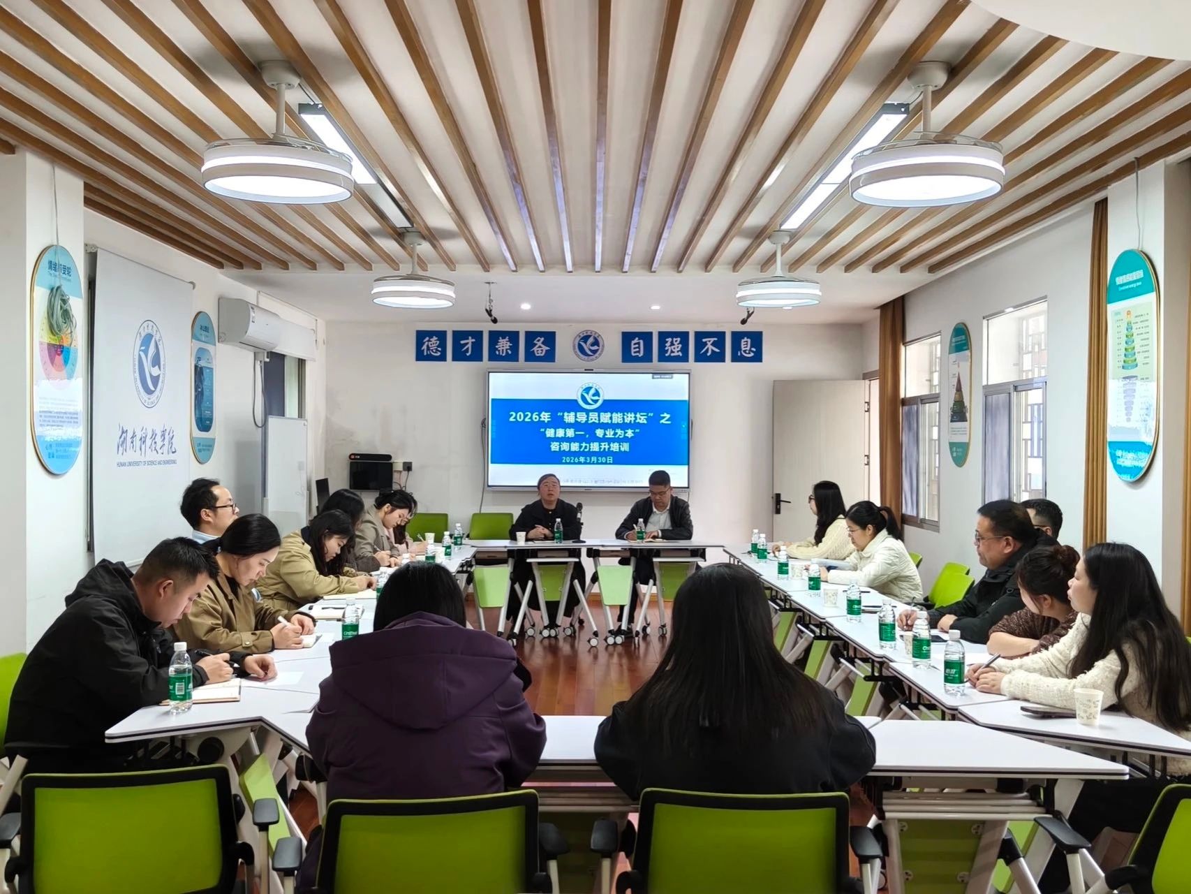 (编辑:姚琳 罗淑雅 拍摄:颜钰轩 排版:孙溢敏 刘依萱)为进一步提升bat365官网专兼职咨询师的专业胜任力,强化心理危机识别与干预能力,推动心理育人工作高质量发展,学工部大学生心理健康教育中心于2026年3月30日15:00—17:00在心理中心智慧教室开展专兼职咨询师专业能力提升培训。本次培训为系列专业能力提升第一期,学工部副部长王君出席活动,全体专兼职咨询老师参与。