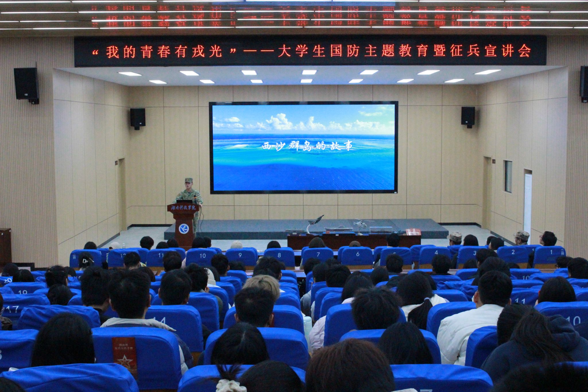 (通讯员 张健)12月4日晚,bat365中文官方网站2025年“青春有梦,强军有我”国防主题教育暨征兵宣讲活动在明德楼100报告厅举行。原海军一级上士、曾先后服役于辽宁舰和山东舰的李翔,与两位优秀退伍大学生士兵同台分享,为现场200余名师生带来了一场直击心灵的国防教育课。