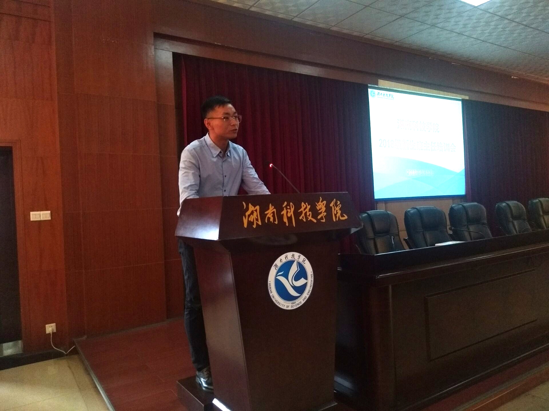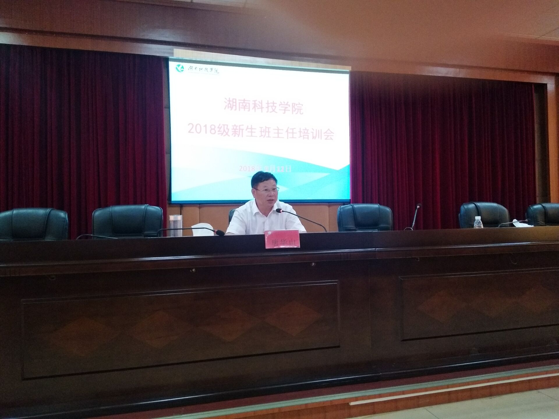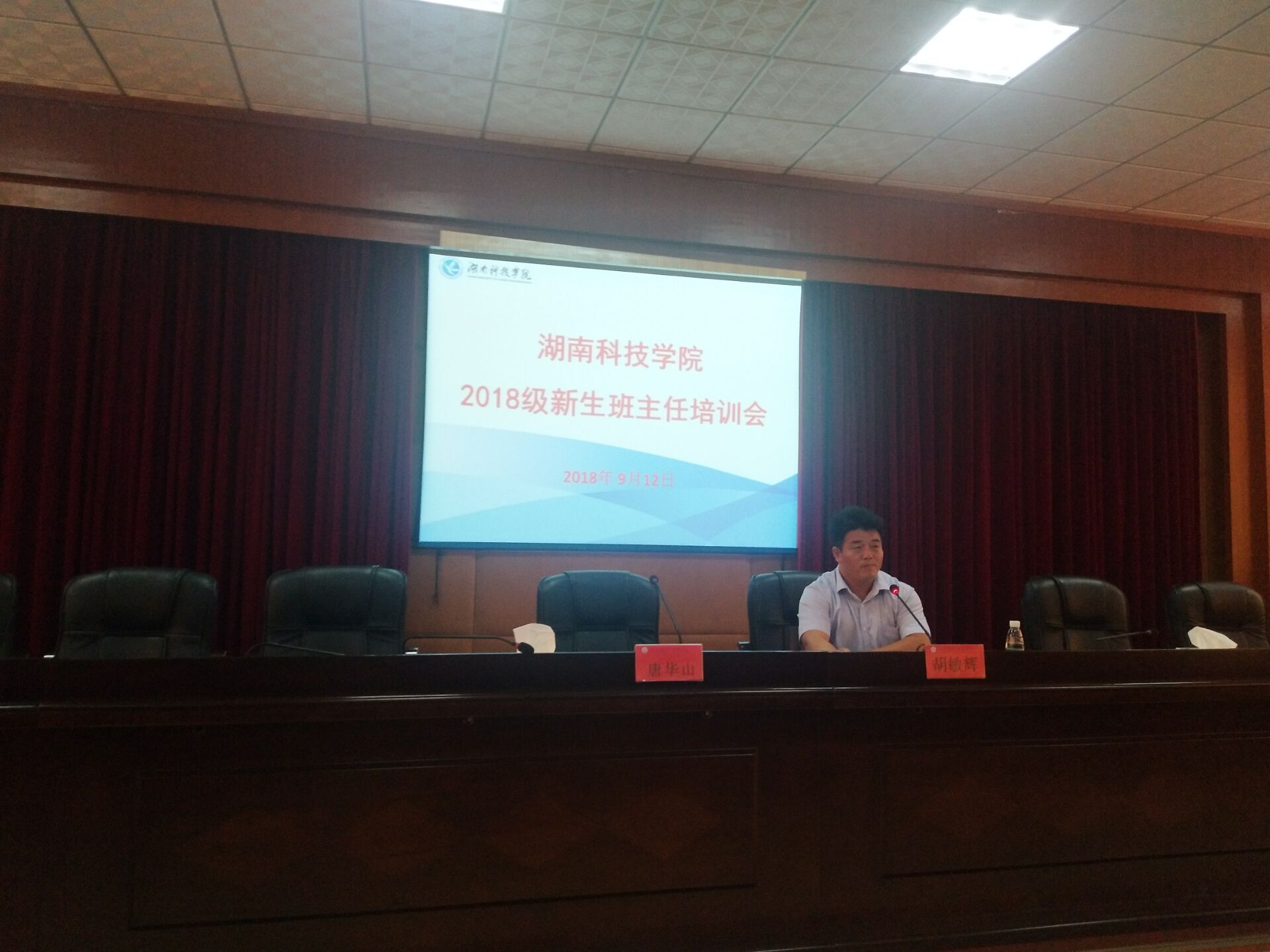 9月13日下午4:30,学校召开2018级新生班主任培训会,会议由学工部副部长胡敏辉主持,学工部长唐华山主讲,2018级新生班主任、各教学学院党总支副书记以及学工部相关人员参加了会议。