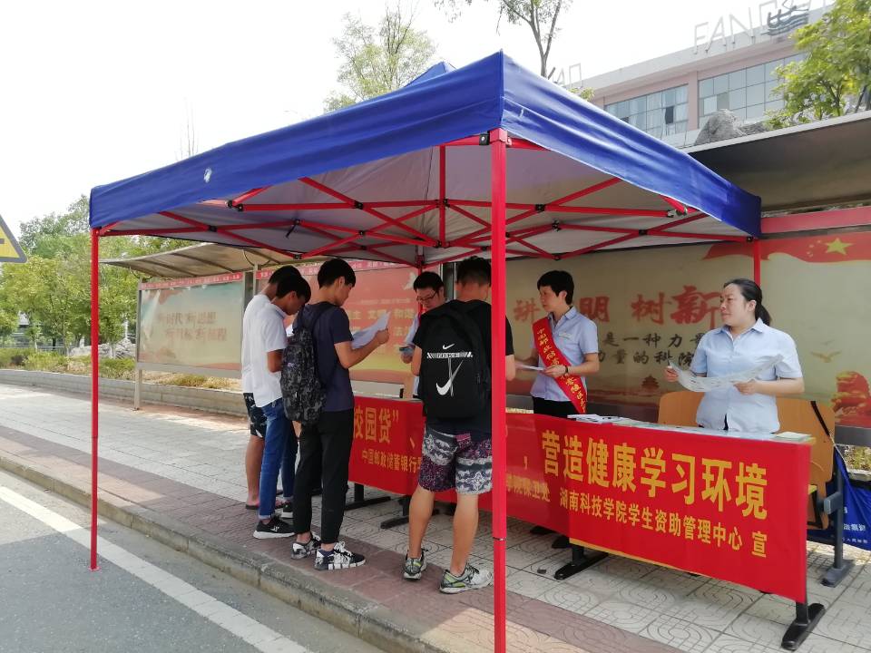 本网讯(记者刘蔓)9月14日上午,学生资助管理中心联合保卫处、中国邮政储蓄银行零陵支行共同开展了一场主题为“拒绝‘校园贷’、‘现金贷’,营造健康学习环境”的宣传活动,旨在帮助广大学生提高金融网络安全意识,促进金融网络安全在校园的传播。