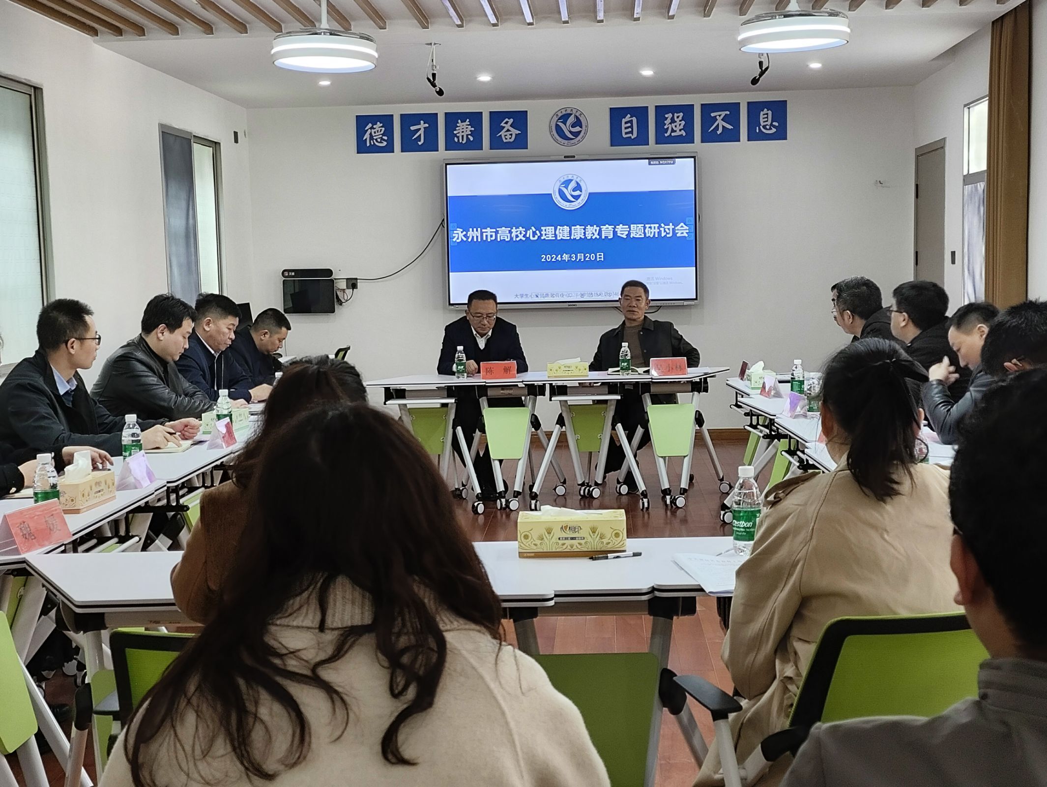 为深入贯彻落实2024年省教育厅心理健康教育工作推进会精神,高质量发展心理健康教育工作,3月20日下午,永州市高校心理健康教育工作研讨会在bat365中文官方网站召开。省教育工委宣传部、省教育厅思政处一级调研员陈解出席研讨会,bat365中文官方网站、永州职业技术学院、永州师范高等专科学校、湖南九嶷职业技术学院相关领导、老师参加,研讨会由bat365中文官方网站党委委员、副校长、工会主席吴小林主持。