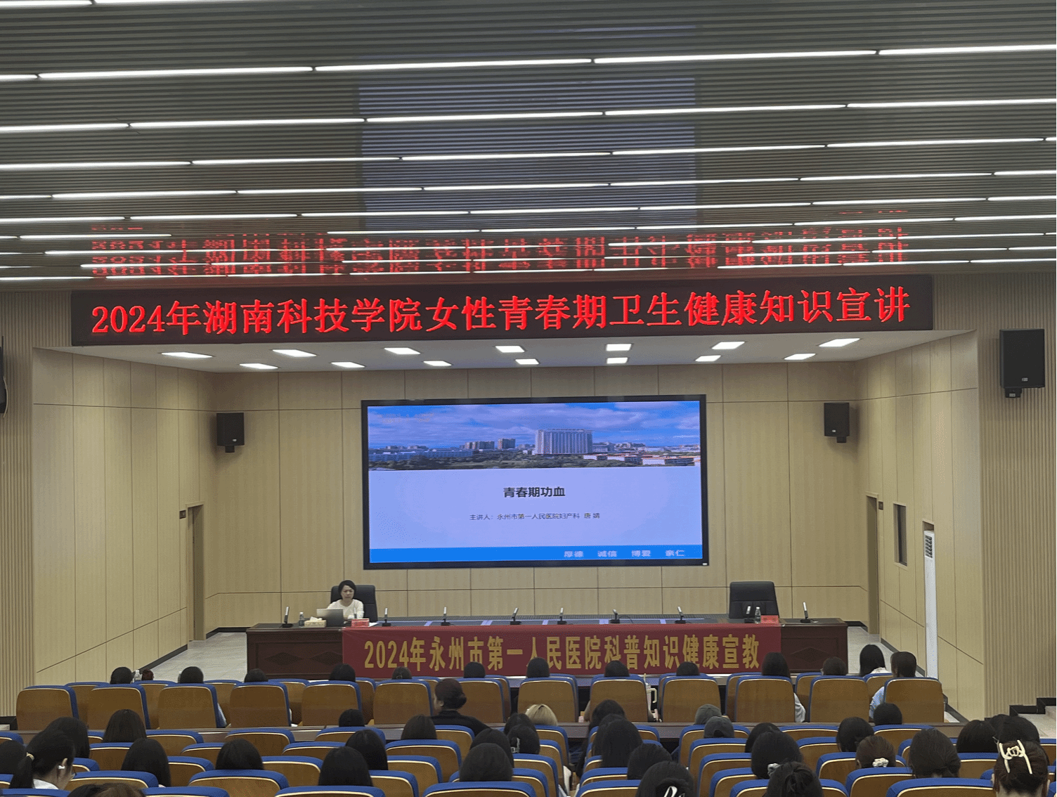 为进一步提高bat365官网女生对青春期健康知识的认知水平,强化其自我保护意识,推动身心健康发展,学生工作部特邀永州市第一人民医院妇产科副主任医师唐婧,于bat365官网开展2024 年bat365中文官方网站女性青春期卫生健康知识宣讲活动。
