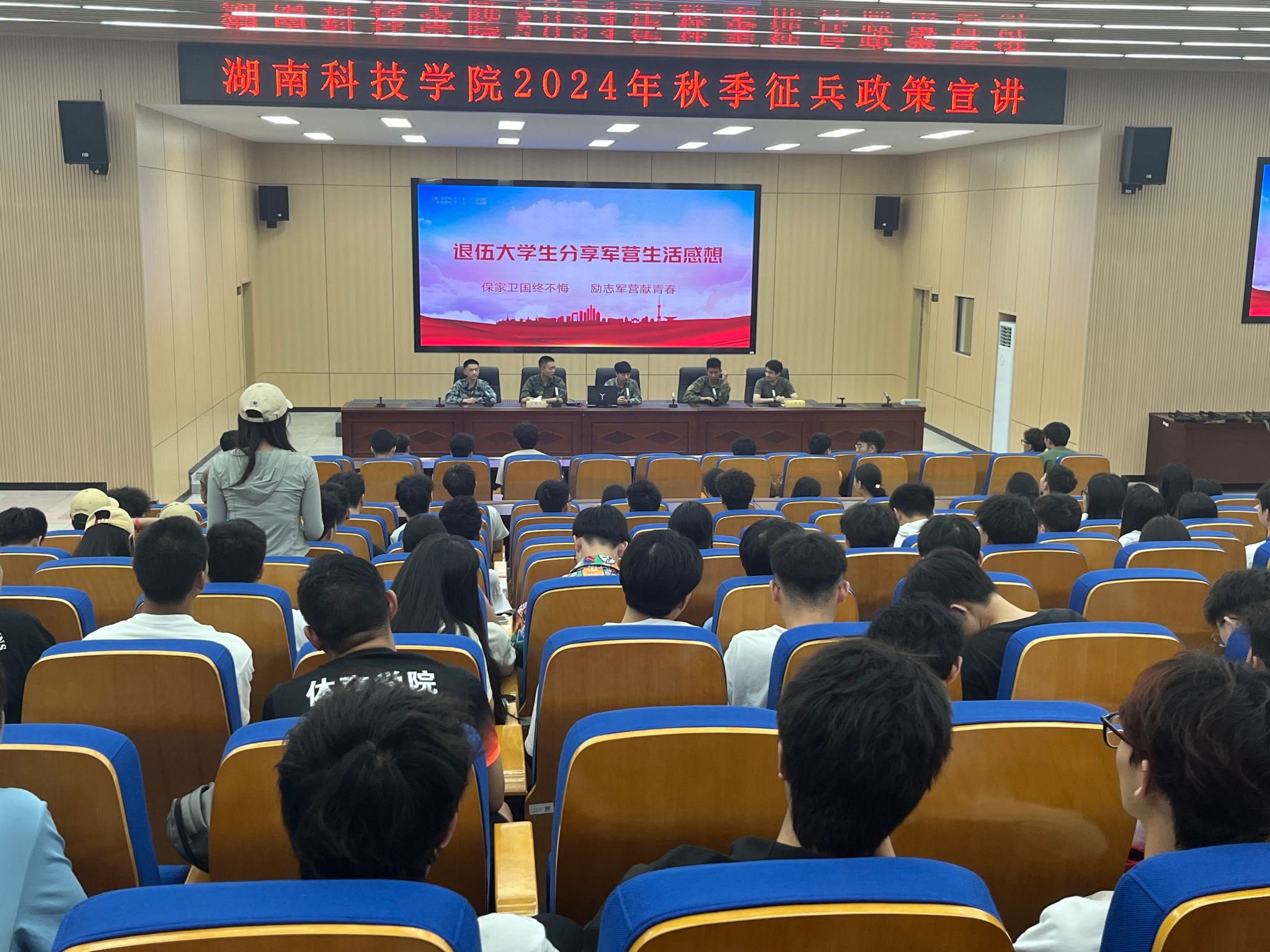 本网讯(学工部)5月27日,参军报国当少年,岁月无悔正青春。为贯彻落实习近平强军思想的重要举措,积极响应国家征兵政策,做好2024年秋季征兵工作,激发bat365官网青年学子参军报国热情,充分发挥高校征兵主阵地作用,学校在明德楼100报告厅开展“‘携笔从戎,明日英雄’2024年秋季征兵政策宣讲”活动,活动吸引了近300人参加。