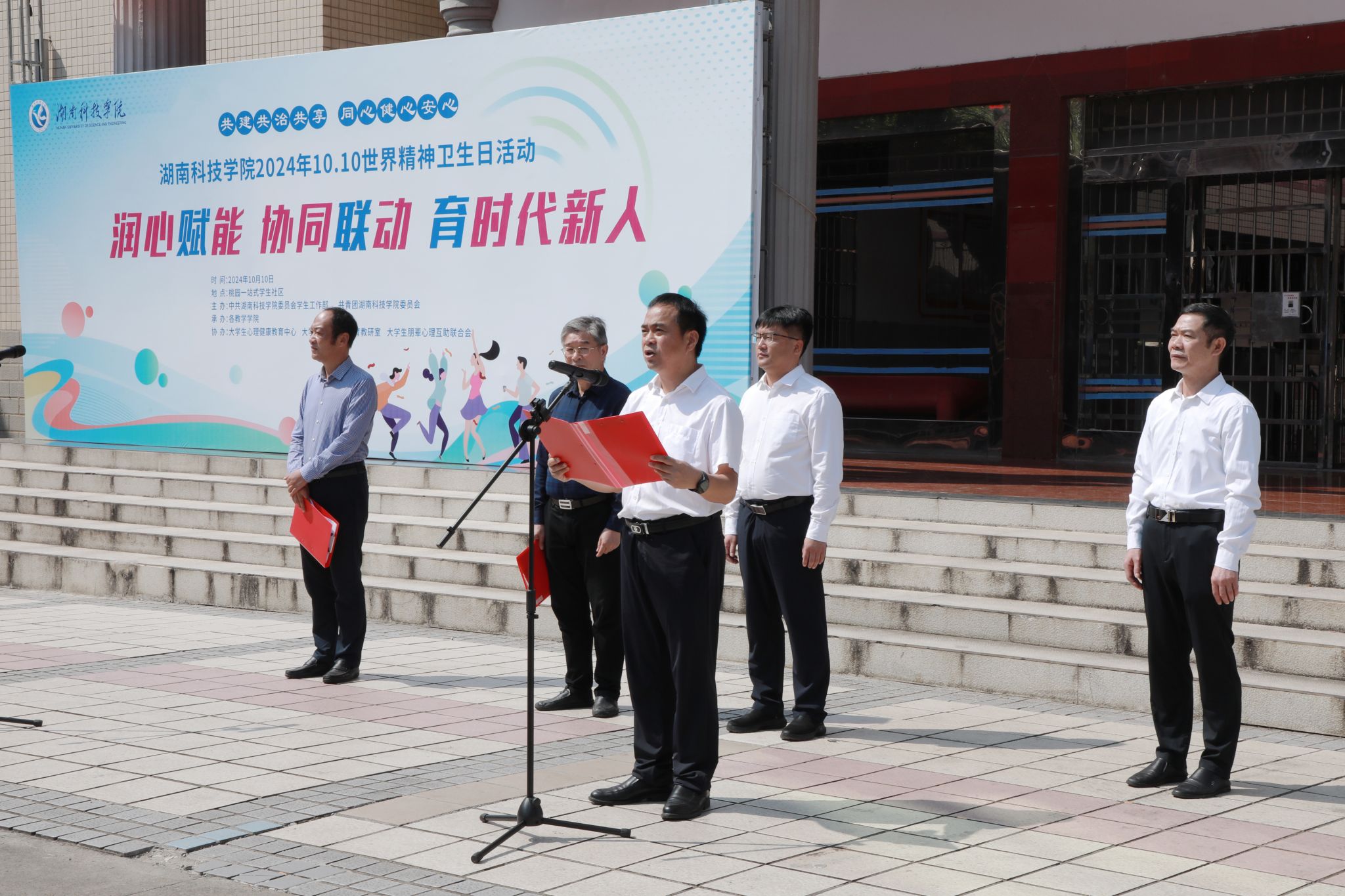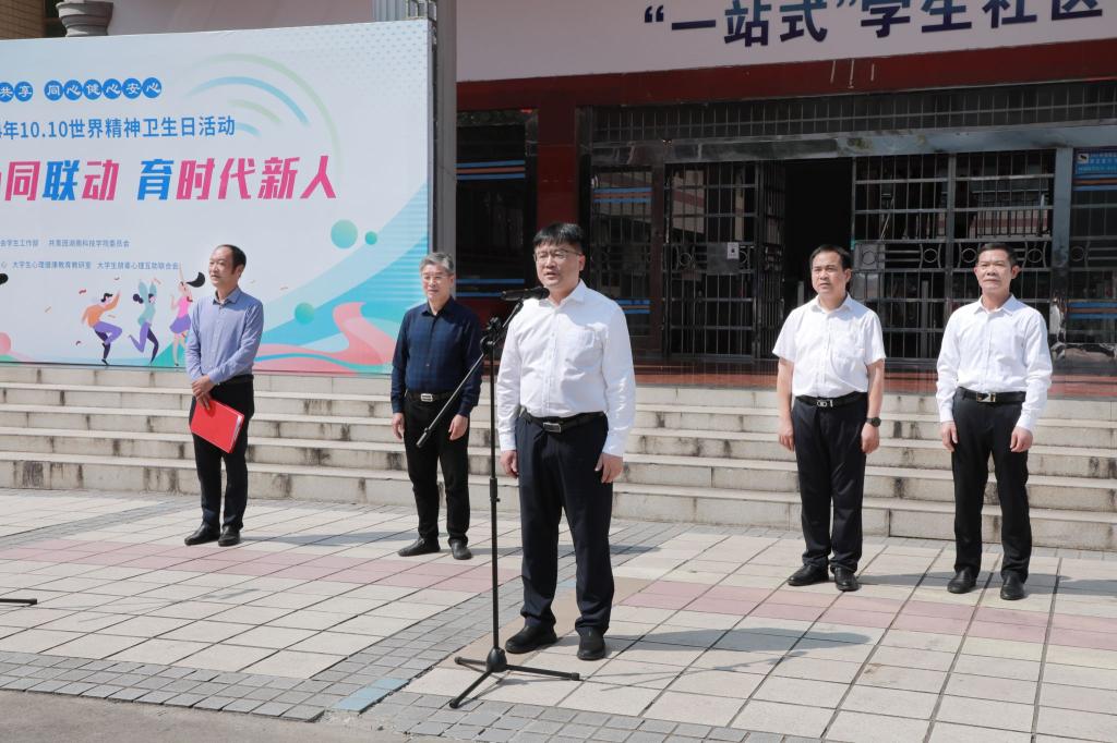 本网讯(记者 袁馨 向薛峰 谢志豪)10月10日,学校举行第二届“一站式”学生社区文化艺术节开幕仪式暨10.10世界精神卫生日活动。校党委书记李钢,党委副书记、校长黄创霞,党委副书记宋宏福,党委委员、副校长吴小林,党委委员、组织部部长杨涛出席活动。启动仪式由杨涛主持。