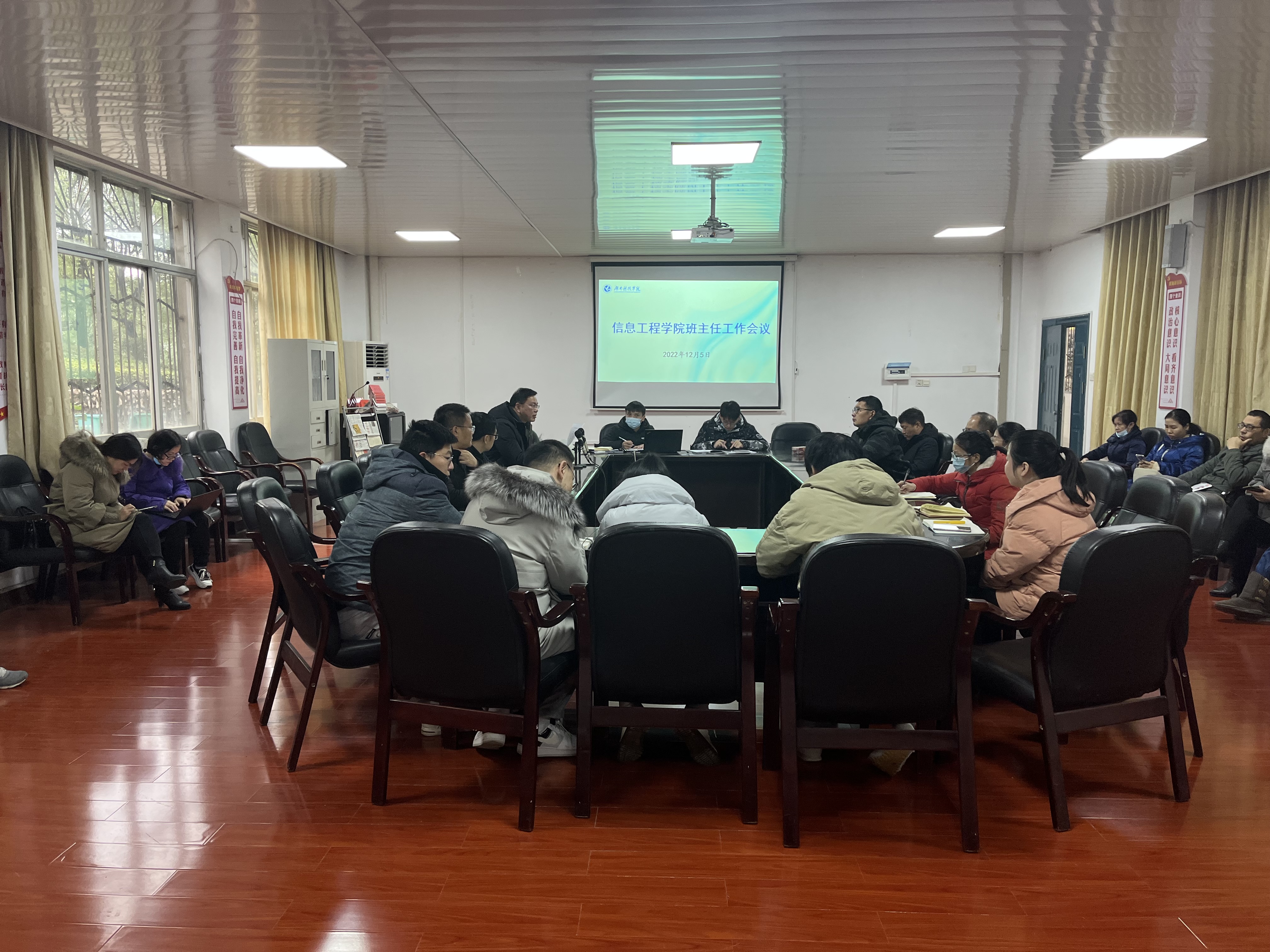 本网讯(通讯员 向慧蓉)12月5日,我院组织召开安全稳定工作会议。院长尹向东,党总支书记刘国华、副书记夏汉伟,各年级辅导员以及各班班主任参加会议,会议由夏汉伟主持。