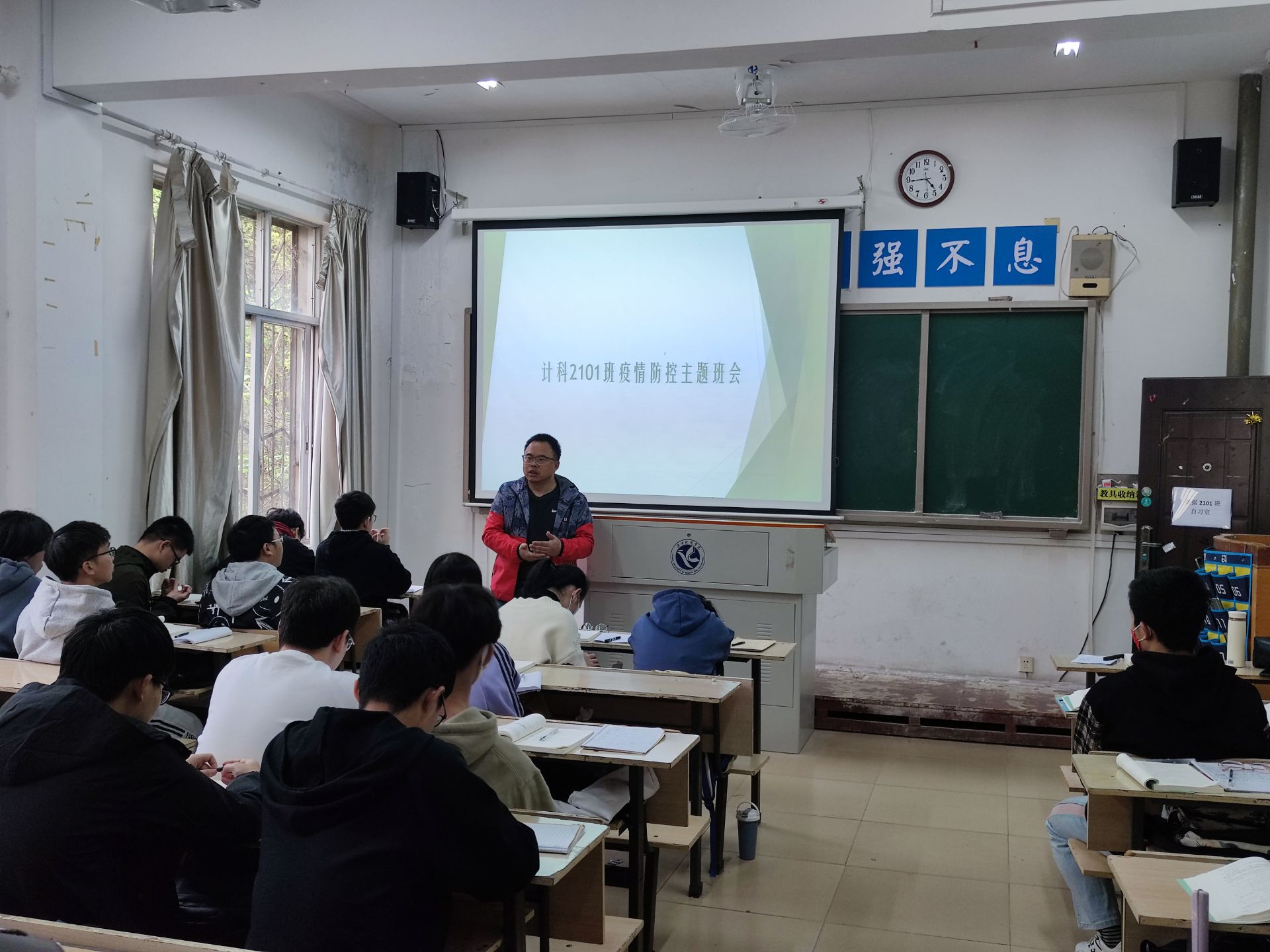 会上,各年级辅导员、班主任深入学生班级,宣讲防控形势、防控政策、防控策略、防控纪律等,强调面对国内疫情点多、面广、频发的严峻形势,要积极配合学校防疫工作,做到非必要不出校园,有效阻断疫情传播链。要落实体温晨午检制度,密切关注个人身体健康状况,若有发烧、咳嗽等症状应及时向辅导员或班主任报告,立即就医,做到早发现、早报告、早隔离、早治疗。要做好自我防护,少聚集、多通风、戴口罩、勤洗手。要保持理智和冷静,不传播非官方渠道发布的疫情相关信息,不造谣、不信谣、不传谣,不盲目跟风,听从国家政府以及相关疫控部门的安排,配合做好防护工作,在疫情面前要保持镇定。要坚信万众一心,众志成城,我们必能打赢这场疫情防控阻击战。