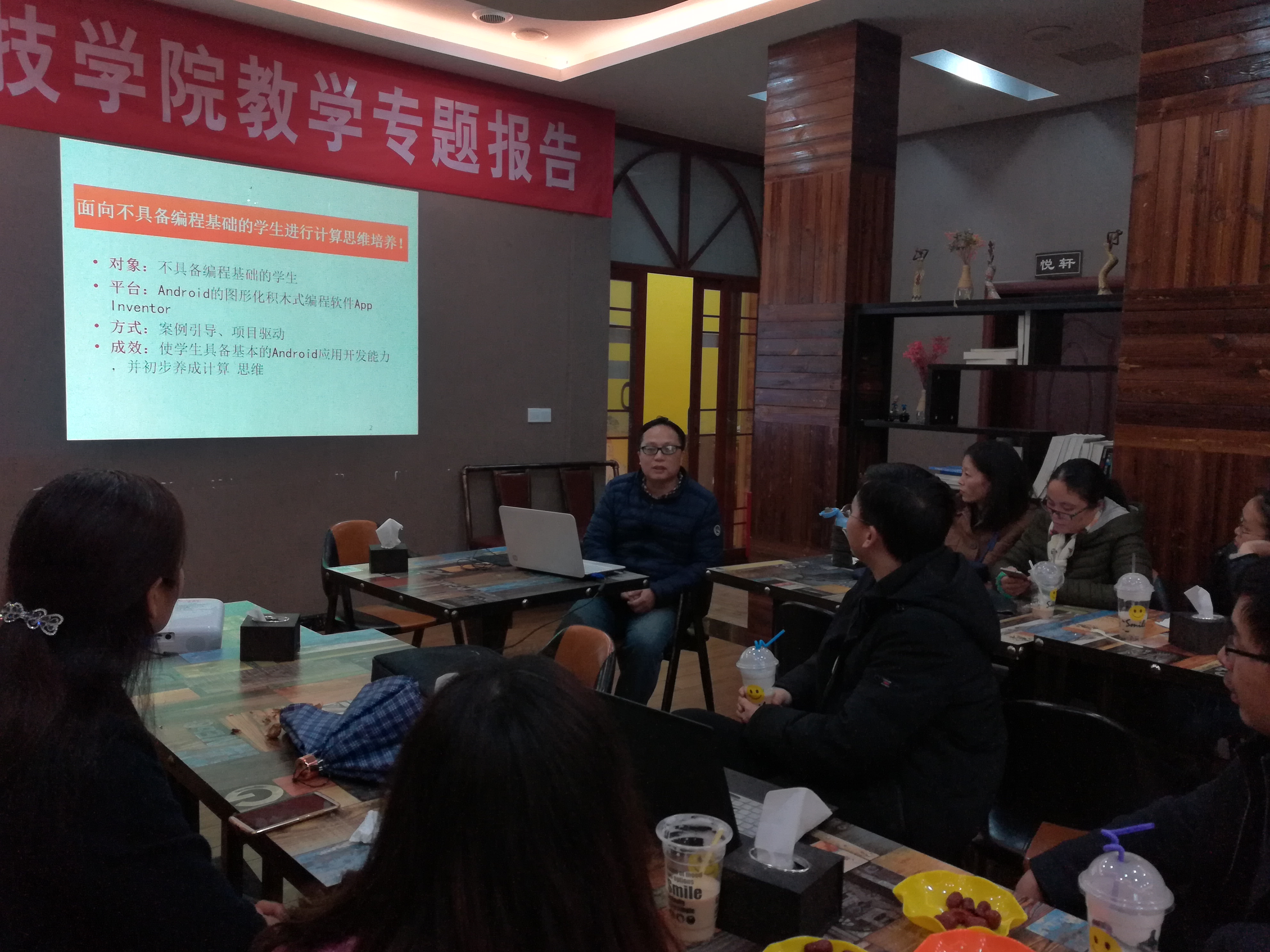此次教研一共有两个专题,第一个专题《”新工科”驱动下大学计算机基础教学体系和教学模式》由宋梅老师主讲,她从大学计算机基础课程的教学体系出发,罗列出了所有可以开展的课程内容,然后就课程内容能实施的教学模式做了介绍,还有配套的教材编写等的一系列事宜。然后接着由肖辉军老师重点介绍了浙江大学城市学院开设移动应用开发课程群的情况,探讨了bat365官网文科学生大基础课能否零基础进行Android移动应用开发的可能性。