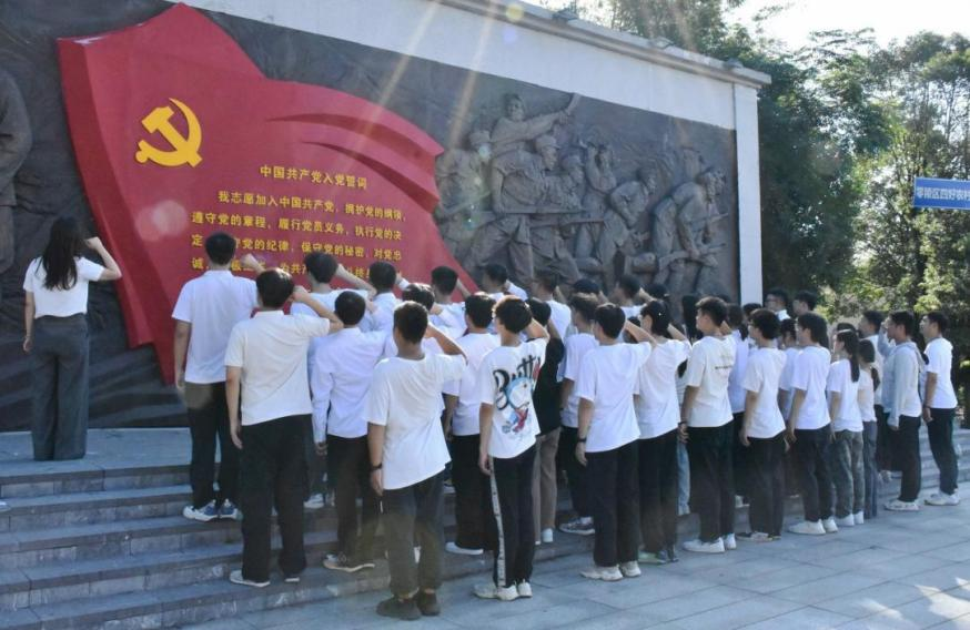 在纪念馆前,党员们在跟随讲解员的脚步,了解到红六军团在革命战争时期的艰苦奋斗历程,通过一张张珍贵的老照片和一件件革命文物仿佛穿越时空,让亲历了那段波澜壮阔的历史;革命先烈们不畏牺牲、不惧艰险、不怕困难的精神深深感染了每一位学生党员。
