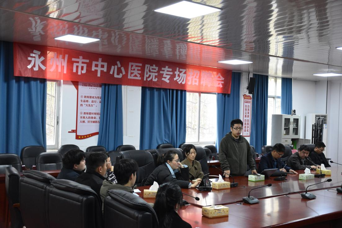 本网讯(通讯员 黄紫黎 唐巧娟)为了深化校企合作,助力毕业生高质量就业,3月17日,我院举办永州市中心医院2025届毕业生专场招聘会。永州市中心医院信息部主任唐一淇,学院党总支书记罗恩韬、副书记夏汉伟等参加。