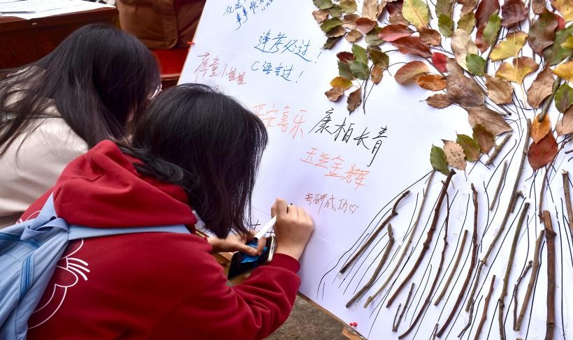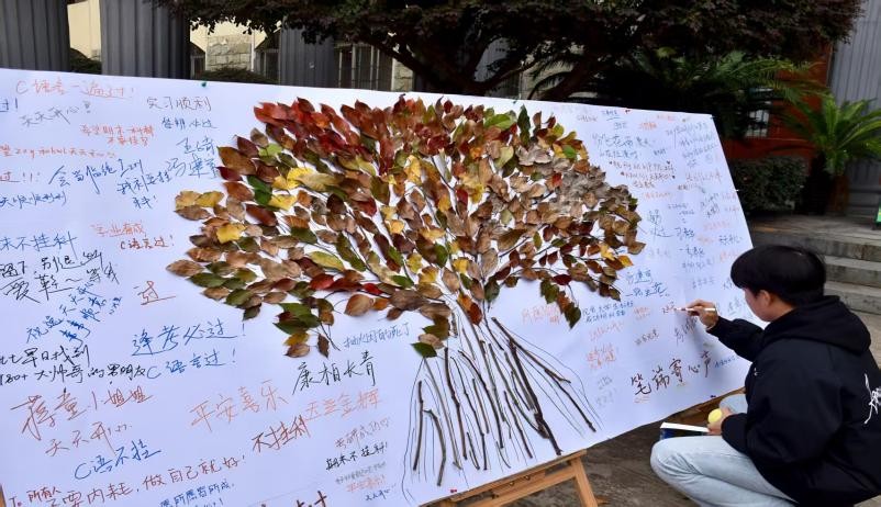 活动创新融合自然美育与心理疏导,设置落叶拼贴和心声书写两大环节,旨在通过艺术创作的形式,为广大学生构建一个舒缓压力、表达情感的有效平台。
