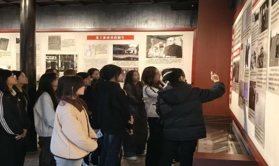在讲解员的引导下,师生们步入李达故居,认真聆听其革命事迹,深入了解他在党的创建初期以及马克思主义理论研究与传播中的卓越贡献。丰富的文物展陈与详实的史料,生动再现了李达同志的革命生涯与学术成就,引发师生深切共鸣。
