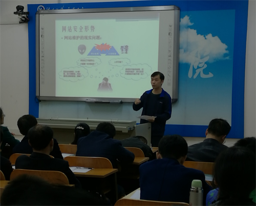 (3)网络与信息安全宣传周。为积极配合国家网络安全宣传周活动,增强校园网络安全意识,提高网络安全防护技能,2016年9月19日至23日,学校党政办、党委宣传统战部联合信息化办公室开展了一系列网络安全宣传活动,组织部分学师生参观了bat365官网中心机房,举办了2场信息安全讲座。