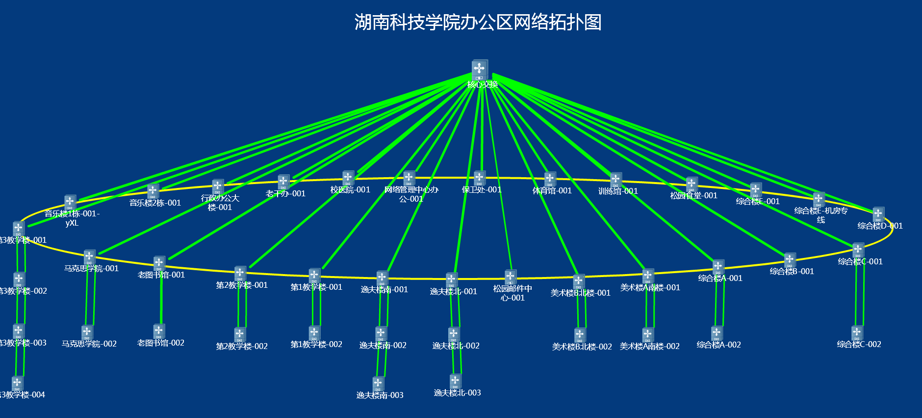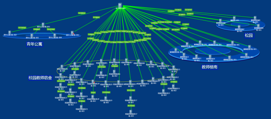 办公教学区设计为万兆(10G)骨干、千兆(1G)桌面的以太交换网。全网采用了100台万兆交换设备覆盖全校近40栋教学、办公及附属楼宇的所有办公室和实验室。