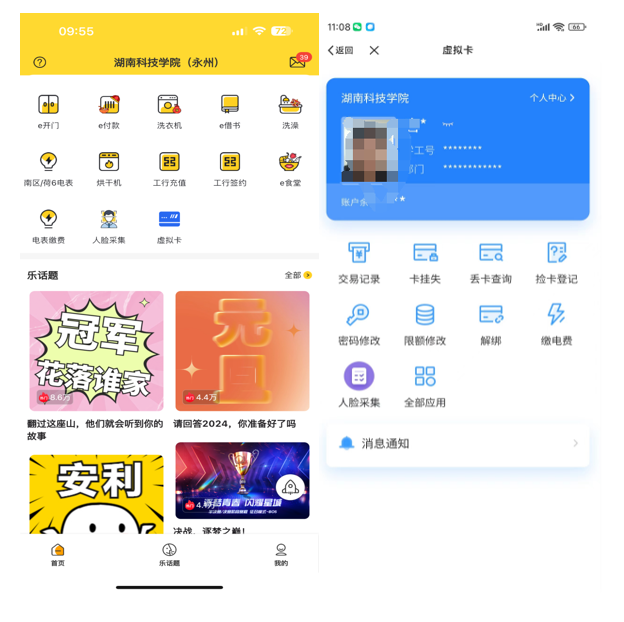 2.扫码识别方式:请在“智校乐”app内,点击“e开门”服务,展示二维码对准门禁终端扫码区域摄像头。