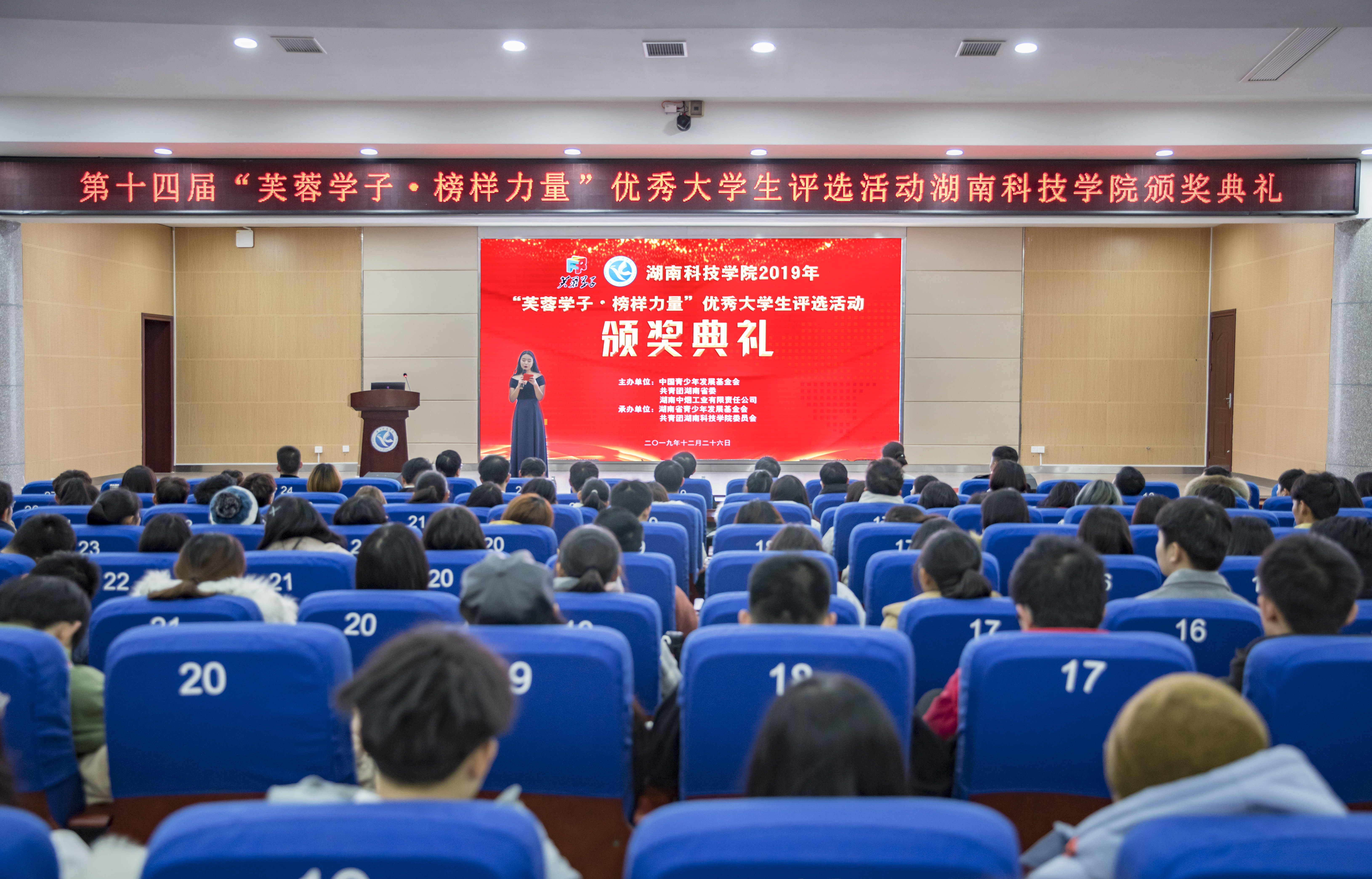 12月26日晚,第十四届“芙蓉学子·榜样力量”bat365中文官方网站优秀大学生评选活动颁奖典礼在潇湘大讲堂举行。副校长吴小林,宣传统战部、学工部、教务处、科技处、团委、就业创业指导中心等职能部门负责人及600余名学生代表参加。