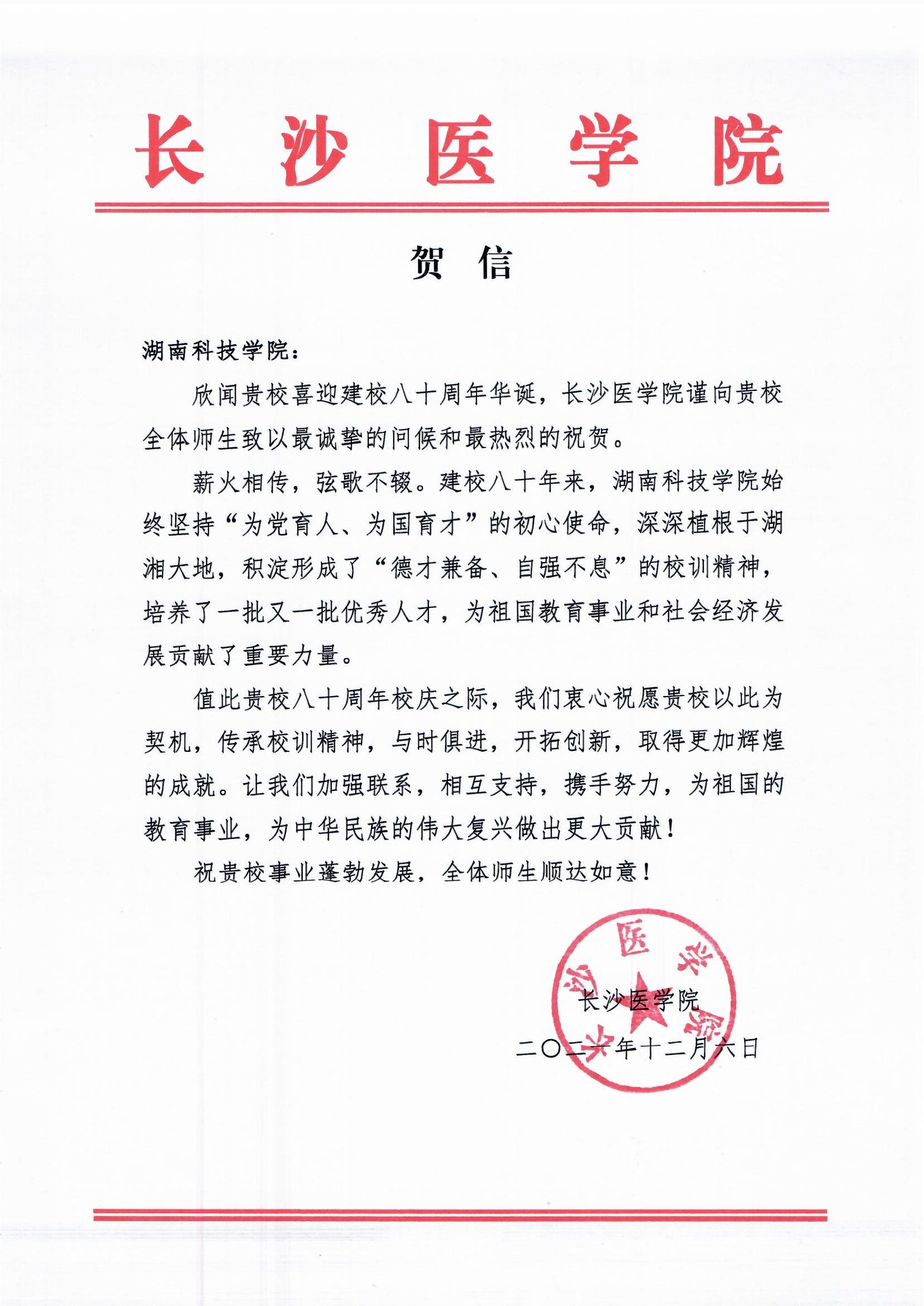 20211206给bat365中文官方网站校庆的贺信(长沙医学院)