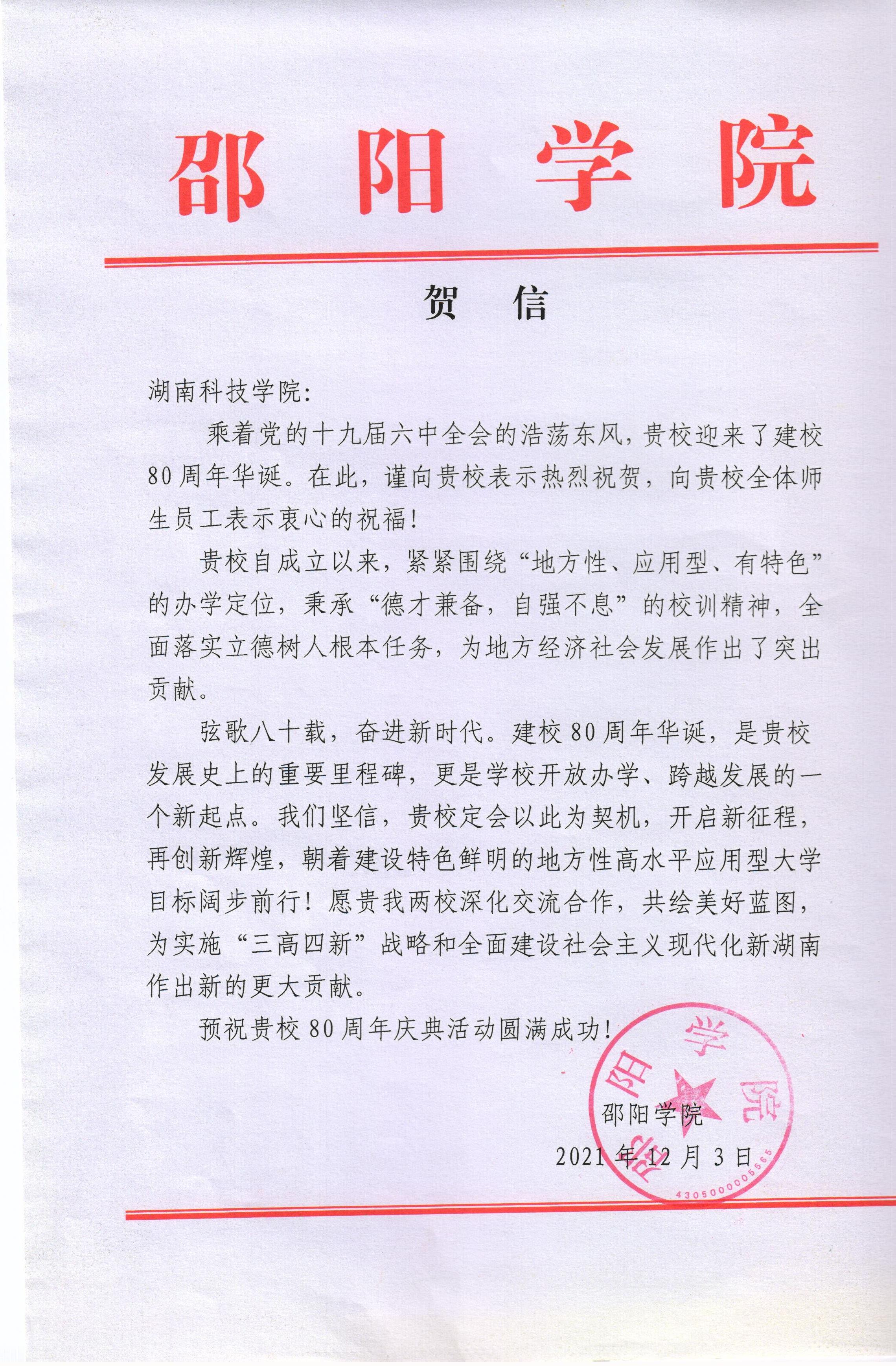 20211203给bat365中文官方网站校庆的贺信(邵阳学院)