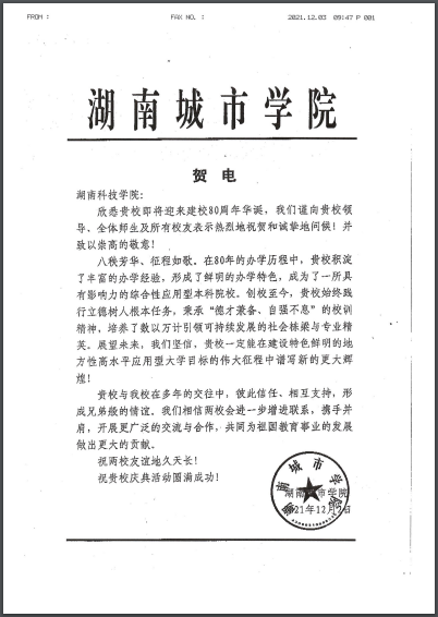 编者按:风雨兼程百十载,弦歌不辍奏华章。学校即将迎来80周年校庆,期间,学校收到大量各单位、团体的贺信贺词贺电。在此对部分贺信做一集锦,以表感谢!(排序不分先后)