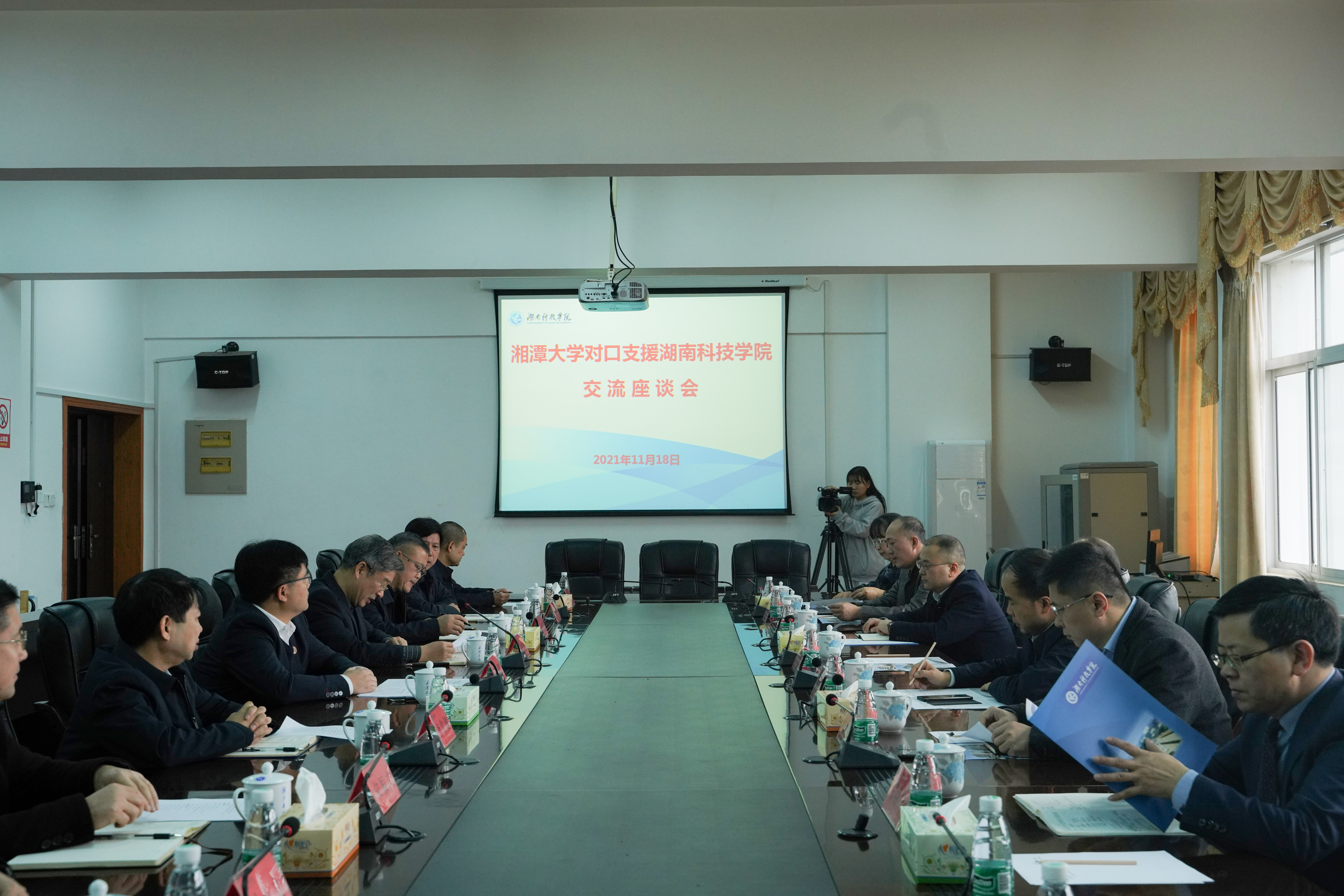 本网讯 为进一步加强两校间合作交流,切实落实《湘潭大学对口支援bat365中文官方网站合作协议》,11月18日上午,湘潭大学校长李伯超、副校长盛明科带队来bat365官网开展对口支援活动。bat365官网校长李钢,党委副书记宋宏福,副校长李常健、何福林及有关职能部门负责人出席座谈会。会议由宋宏福主持。