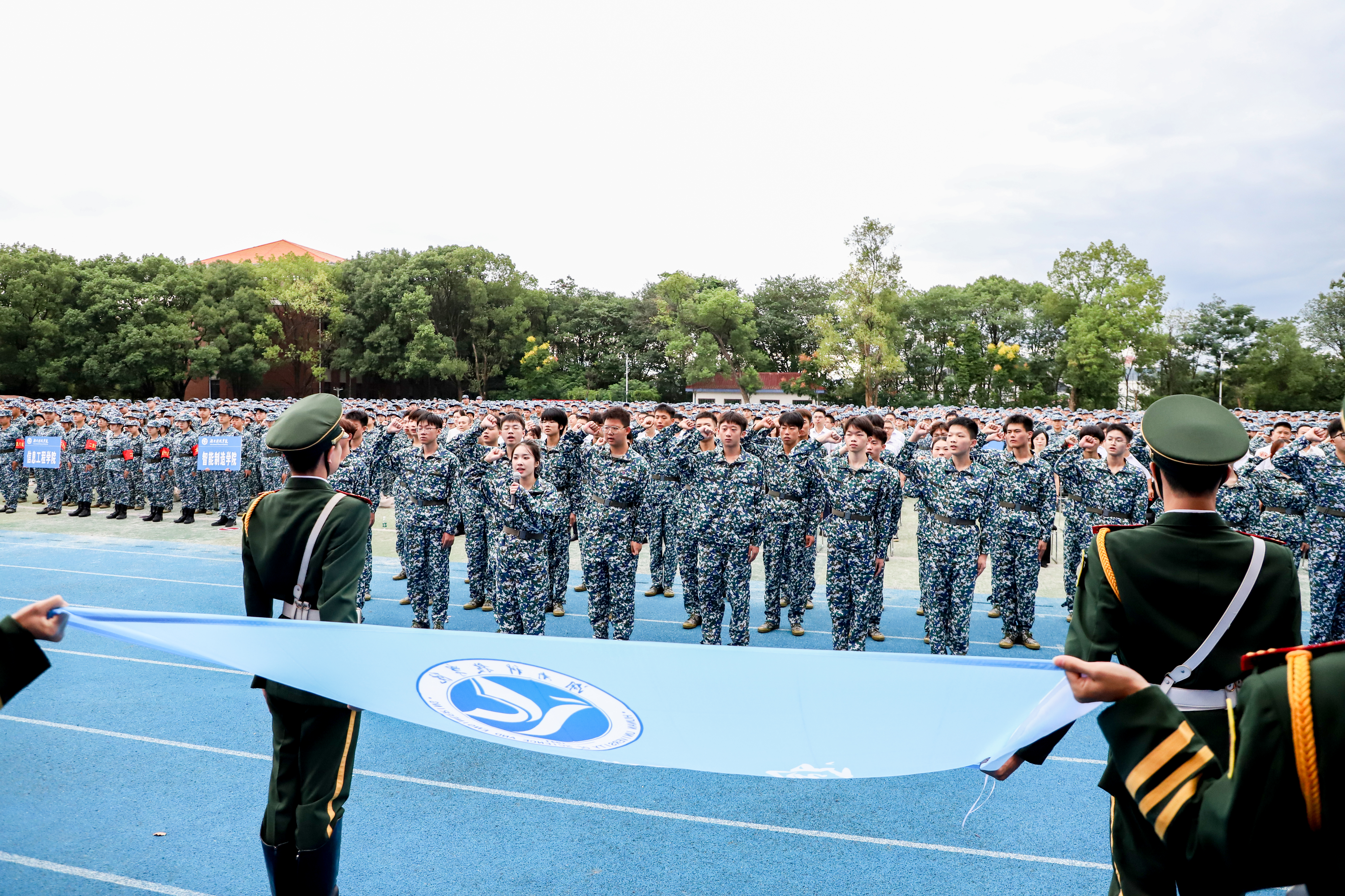 全体2023级新生面向校旗进行了学子宣誓。