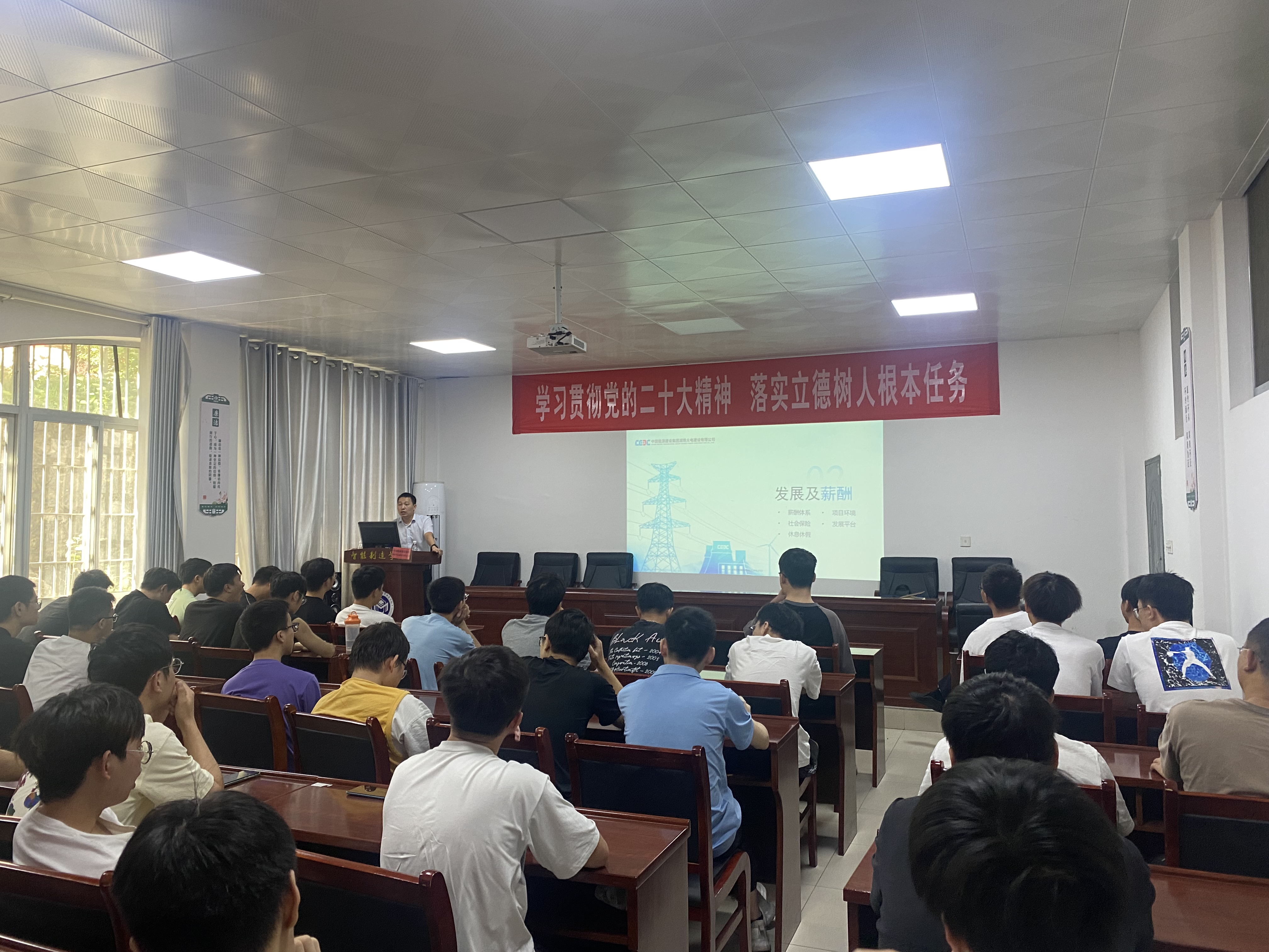 本网讯(通讯员 刘泽平)为强化就业优先政策,早启动,早部署,拓宽就业渠道,营造浓厚就业氛围,促进2024届毕业生高质量充分就业,9月19日上午,学院邀请中国能源建设集团湖南火电建设有限公司来校举办毕业生专场招聘会。学院党总支书记杨攀、党总支副书记彭涛凯参加座谈交流。