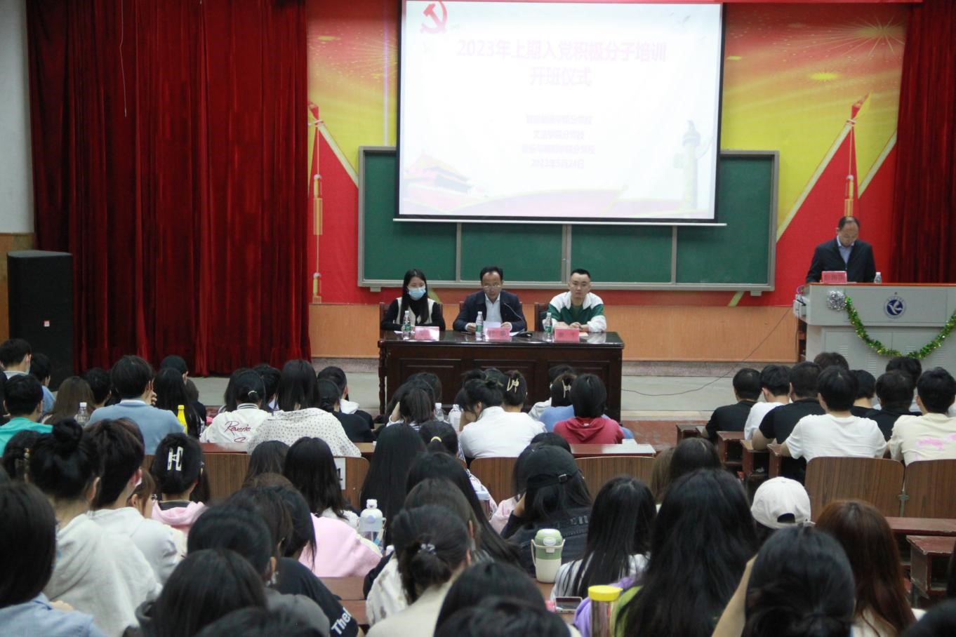 本网讯(通讯员 康平)5月24日晚,我院分党校与文法学院分党校、音乐与舞蹈学院分党校在明德楼100报告厅联合举行2023年上期入党积极分子培训班开班仪式。我院党总支书记杨攀、党总支副书记彭涛凯和3个学院党总支组织委员、入党积极分子250余人参加开班仪式。开班仪式由彭涛凯主持。