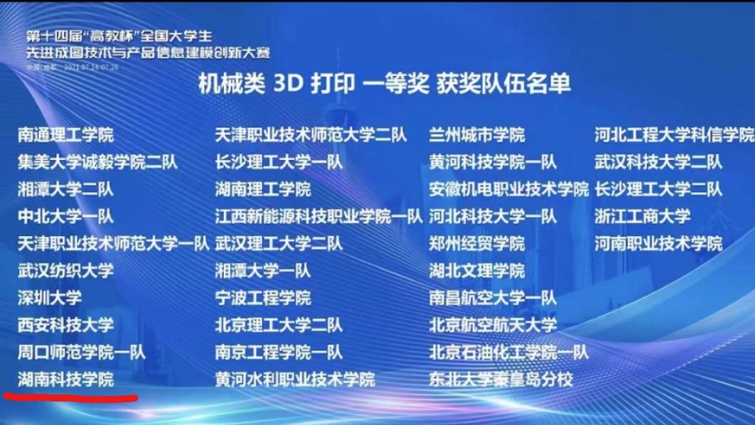 2021年7月26日,第十四届“高教杯”全国大学生先进成图技术与产品信息建模创新大赛在西南交通大学落下帷幕,经过十余天的激烈角逐,bat365官网智能制造学院2019级机械专业学生梁许健、谢凌云,在指导老师罗哲、顾晓猛、夏铁军、夏余平等的指导下最终脱颖而出,荣获机械类3D打印全国一等奖,取得了bat365官网在该类赛事上的最高奖项。