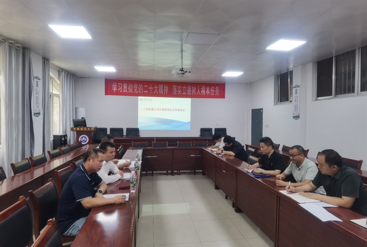 本网讯(通讯员 唐志好)为进一步深化产教融合,加强校企合作,培养优质工程型应用技术人才,助力地方经济社会发展。6月12日下午,学院与湖南锦络电子股份有限公司举行人形机器人设计研发校企合作座谈会。湖南锦络电子股份有限公司董事长唐良荣、院长谭永宏、机械系主任罗哲和学院部分博士、教授参加座谈会。会议由院长谭永宏主持。