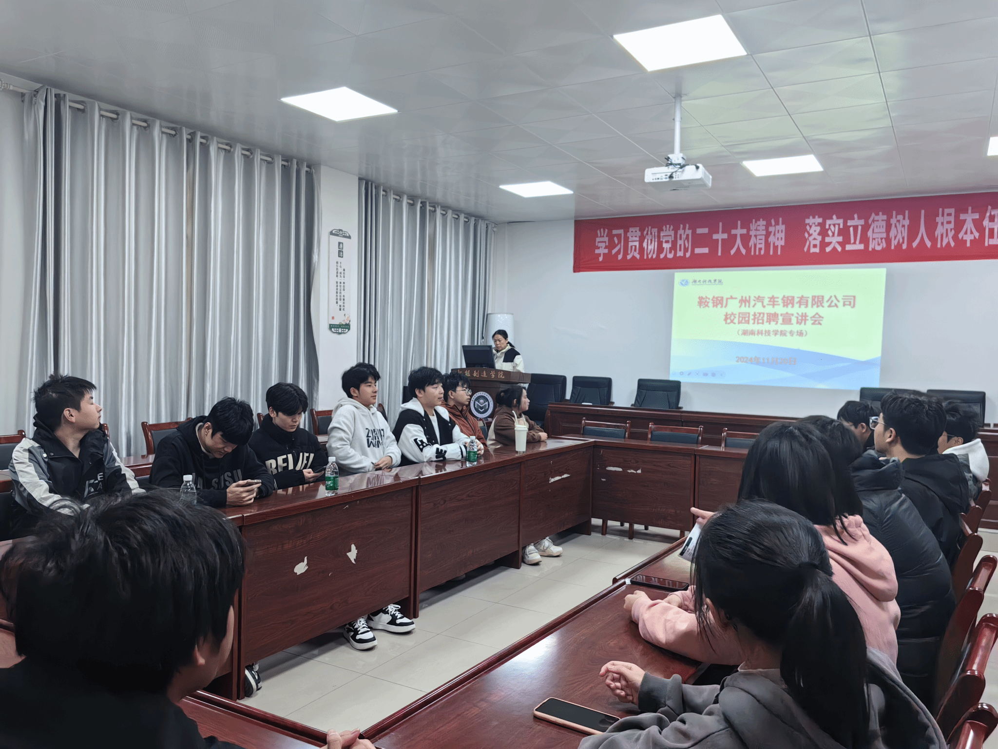 本网讯(通讯员 康平)11月20日,鞍钢广州汽车钢有限公司来院开展校园专场招聘,永州市人社局、学校招生就业与创新创业指导处相关负责人莅临招聘会现场指导,学院2021级机械设计制造及其自动化和电子信息工程专业学生参加。