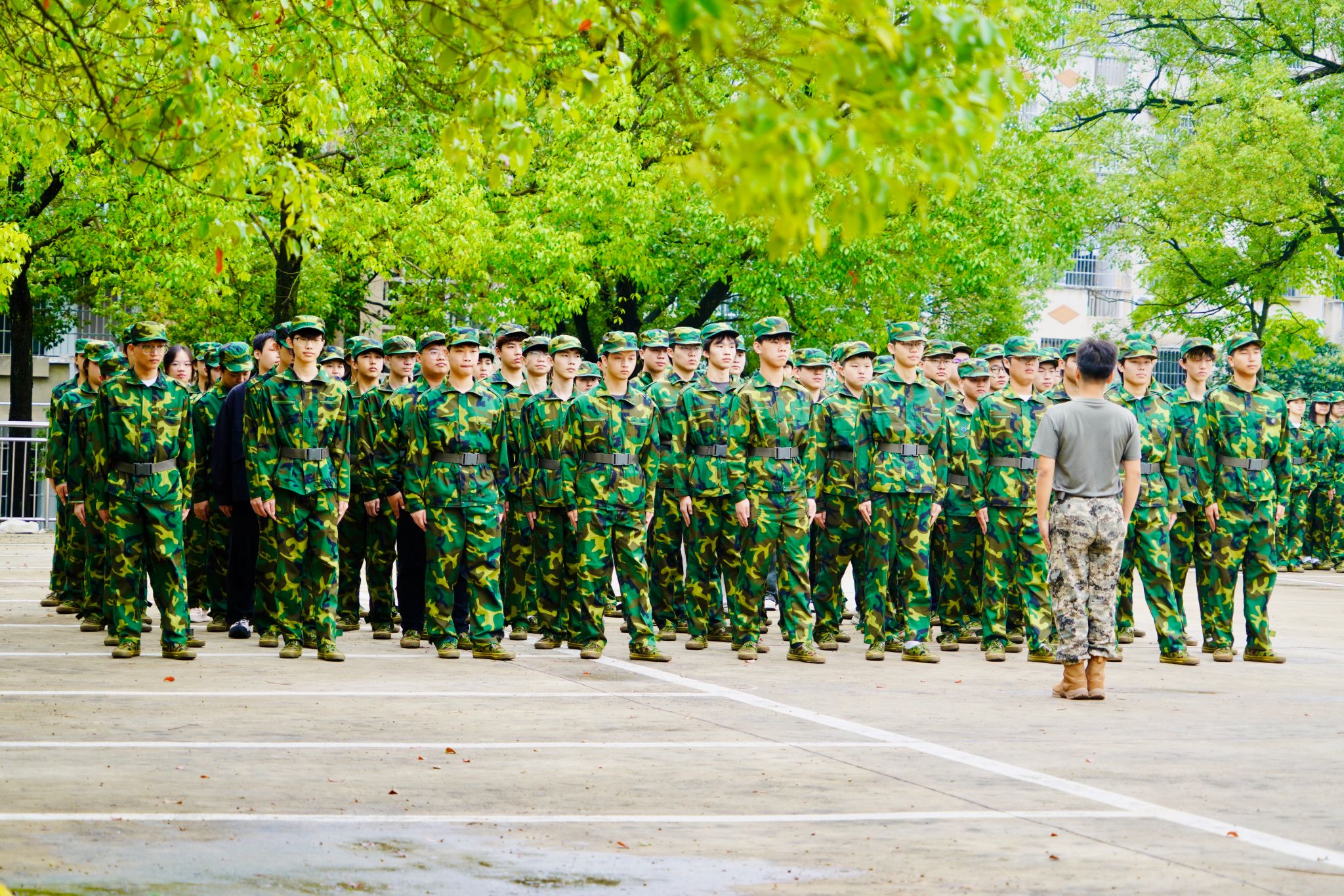 训练场上,同学们迎着晨曦集结,伴着晚霞收队。汗水浸透了迷彩服,却浇不灭青春的热情,从最初的步伐凌乱,到后来的队列严整;从口号的参差不齐,到后来的声震云霄,每一个进步都源于日复一日的坚持,教官们严格要求,纠正每一个动作细节。